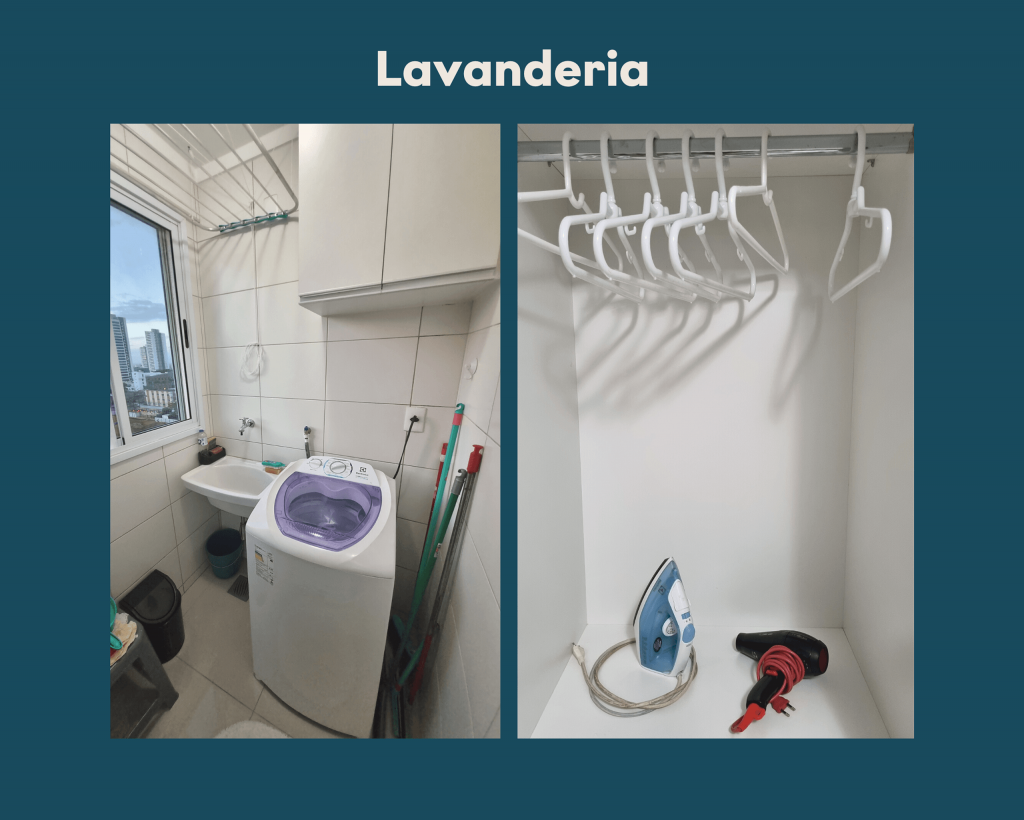 - O uso da lavanderia do condomínio está sujeito agendamento e taxa adicional cobrada pelo condomínio.