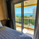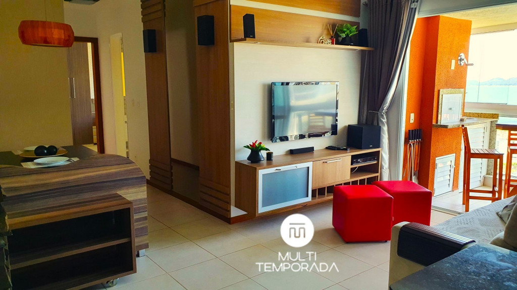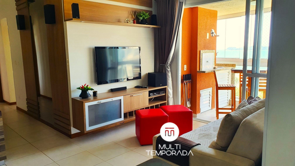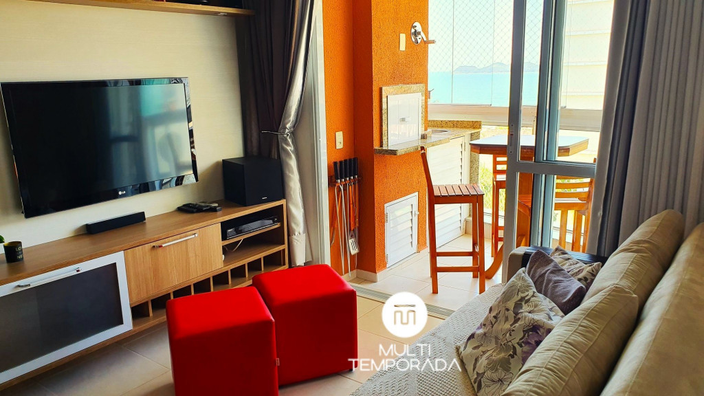 São 70 metros quadrados com varanda com churrasqueira e vista, dois dormitórios climatizados com vista, sendo uma suíte, sala de estar/jantar, cozinha e banheiro social. A capacidade do apartamento atende até 6 pessoas.Suíte: Cama Queen-Size, Ar-Condicionado, TV 32'', Vista Para o Mar e Banheira de Imersão;Dormitório: Cama de Casal, Ar-Condicionado, TV 28'', Vista Para o Mar e Roupeiro;Sala: Sofá-Cama de Casal, Ar-Condicionado e TV 40''; A cozinha e a sala são integradas. A cozinha é equipada com fogão, geladeira, forno, microondas, lava-louças, liquidificador, chaleira elétrica e todos utensílios necessários para fazer uma boa refeição. A sala climatizada ainda possui uma lareira elétrica e uma mesa para 6 pessoas. Por fim, temos internet Wi-Fi, toalhas de banho, roupas de cama, travesseiros e cobertores e máquina de lavar roupas. Tudo isso para um melhor conforto dos nossos hóspedes, para que se sintam em casa, em um perfeito refúgio para descansar e desvendar o que há de melhor no Litoral Catarinense.Observações