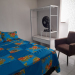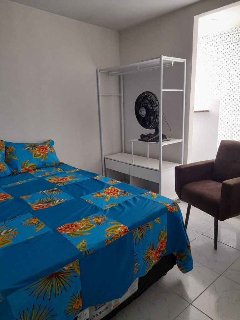 Quarto com ventilador , cama casal (muito confortável), poltrona, TV, closet com enxoval "roupa de cama e de banho" e ferro de passar;