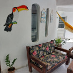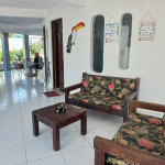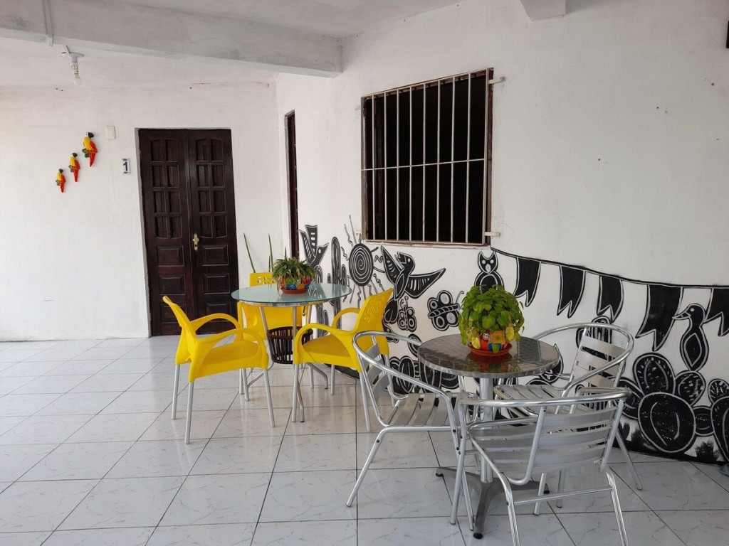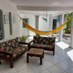 Entrando no prédio, você encontra uma área comum espaçosa, aconchegante e ventilada com cadeiras, mesas para um bom bate papo com a família e amigos e ainda um espaço de relaxamento com redes, para que os hospedes possam aproveitar momentos de leitura e ou até tirar aquele cochilo revigorante.