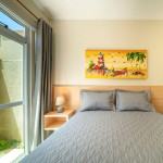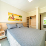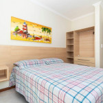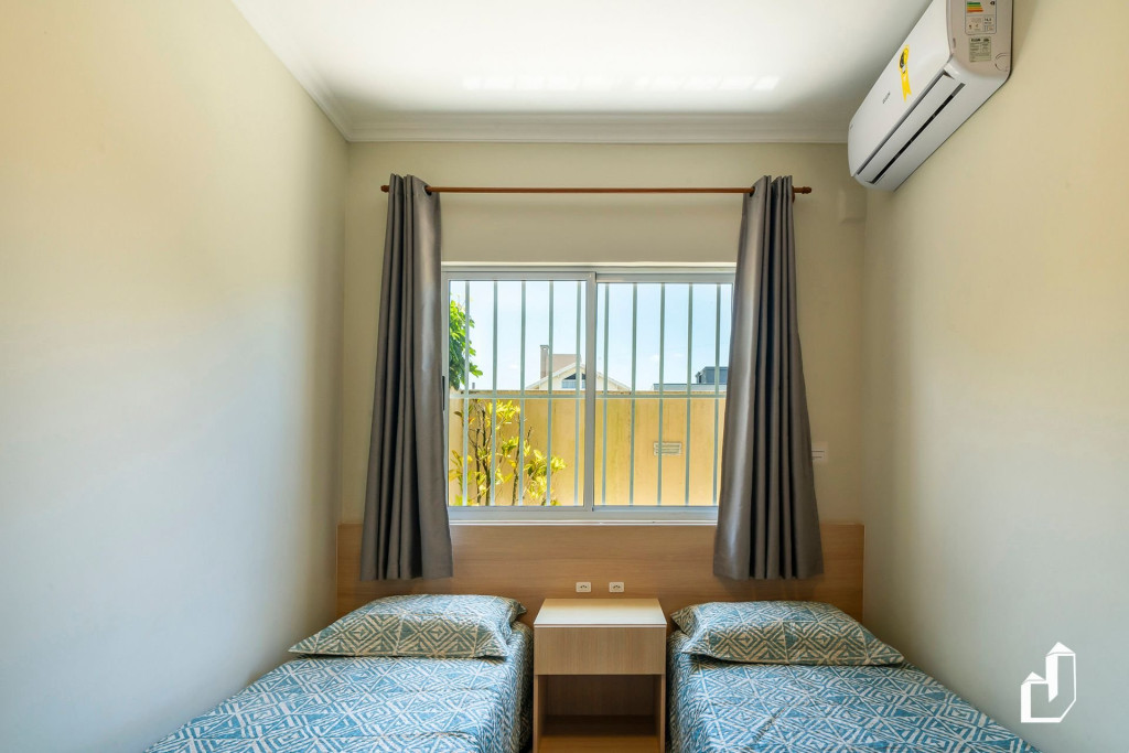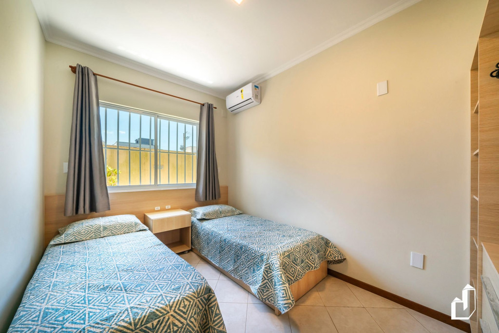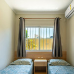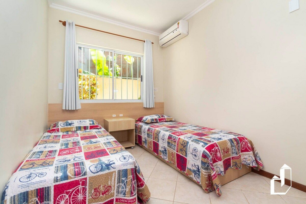 01 dormitório com duas camas de solteiro + 01 cama de solteiro auxiliar com ar-condicionado;