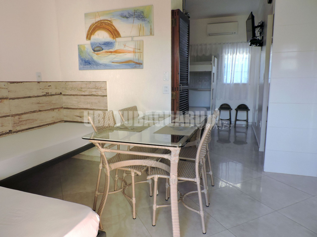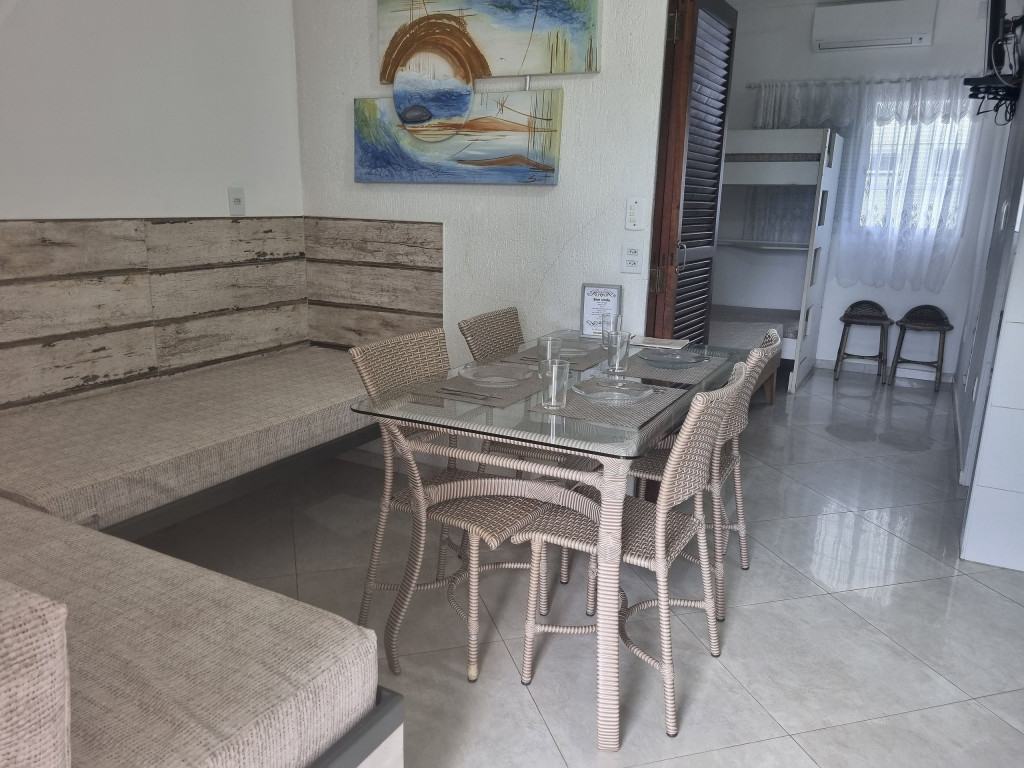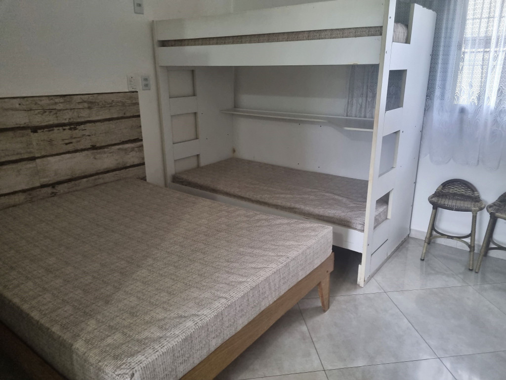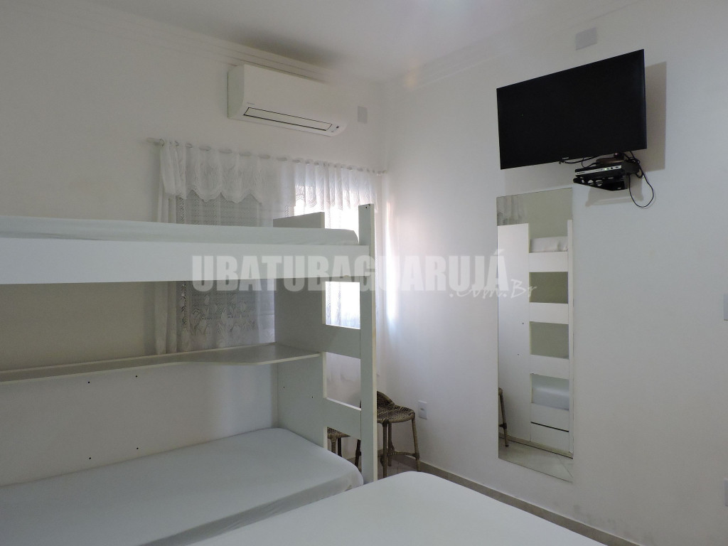 Apartamento para até 5 pessoas no total contando com as crianças independente da idade, a duas quadras (250 metros) da Praia Grande (fica próximo também da Praia Tenório).Quarto com uma cama de casal, uma beliche, ar condicionado, ventilador de teto, cabideiro e prateleiras e TV.Sala conjugada com a cozinha: duas camas de solteiro fixa, ventilador de teto e mesa com cadeiras.Cozinha com geladeira duplex frost-free, fogão, micro-ondas, liquidificador, utensílios de cozinha completo. Garagem para carro (comprimento: 5,50 m - largura: 2,30 m - altura: 2,20 m) e Wi-Fi.