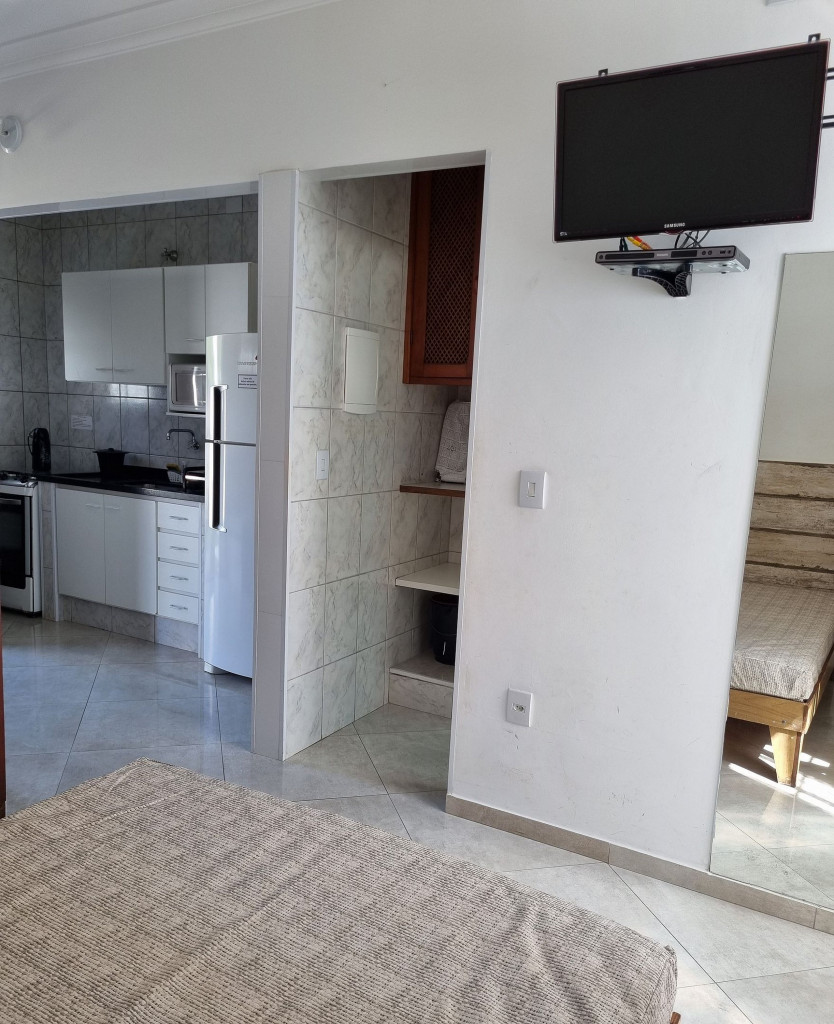 Apartamento 06-C de 1 dormitório para 5 pessoas a duas quadras da Praia Grande - Ubatuba