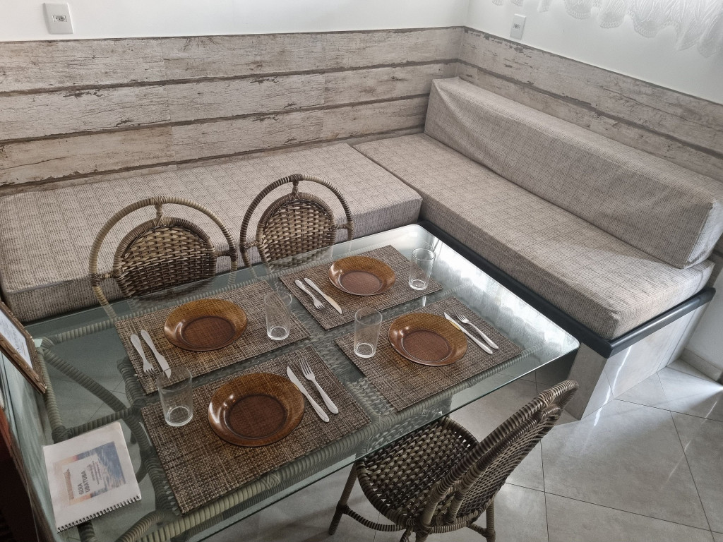 Apartamento para até 5 pessoas no total contando com as crianças independente da idade, a duas quadras (250 metros) da Praia Grande (fica próximo também da Praia Tenório).Quarto com uma cama de casal, uma beliche, ar condicionado, ventilador de teto, cabideiro e prateleiras e TV.Sala conjugada com a cozinha: duas camas de solteiro fixa, ventilador de teto e mesa com cadeiras.Cozinha com geladeira duplex frost-free, fogão, micro-ondas, liquidificador, utensílios de cozinha completo. Garagem para carro (comprimento: 5,50 m - largura: 2,30 m - altura: 2,20 m) e Wi-Fi.