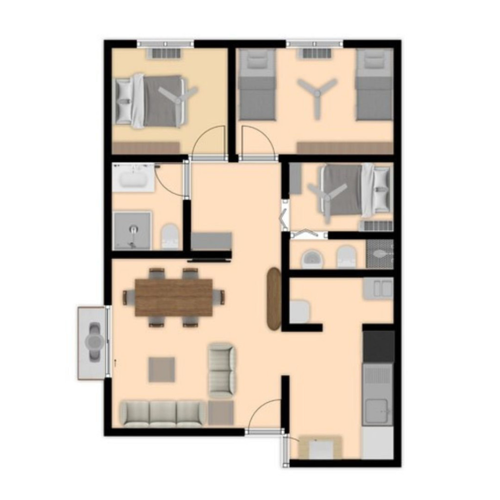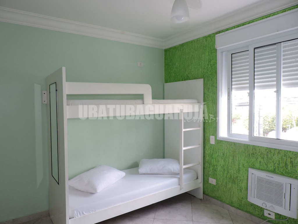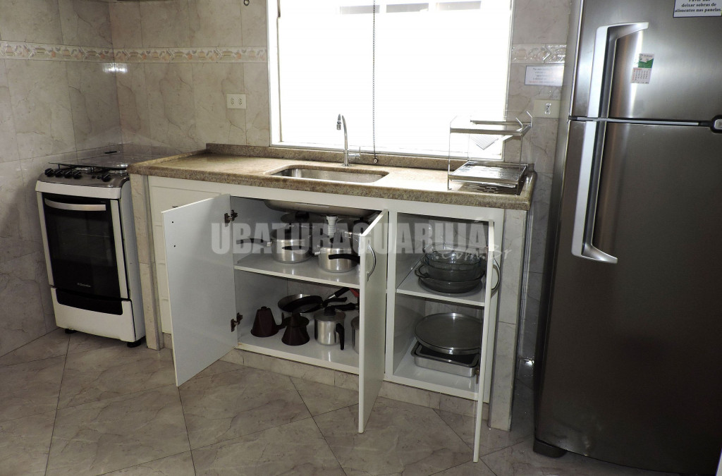 Quarto de casal 1: com cama de casal box, prateleiras, cabideiro para roupa, ventilador de teto e ar condicionado.Quarto de casal 2 (Suíte): com cama de casal box, prateleiras, cabideiro para roupa, ventilador de teto e ar condicionado.Quarto de solteiro 3: duas beliches, prateleiras, cabideiro para roupa, ventilador de teto e ar condicionado. Cozinha com fogão, geladeira duplex frost-free, microondas, liquidificador e utensílios de cozinha completo. Sala de jantar e estar com sacada e vista para a rua, TV de LED de 32’ e ventilador de teto. Garagem para carro (comprimento: 6,00 m - largura: 2,47 m - altura: 2,33 m)