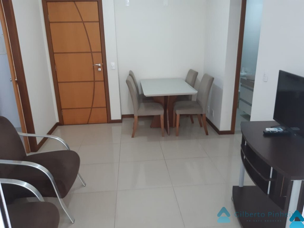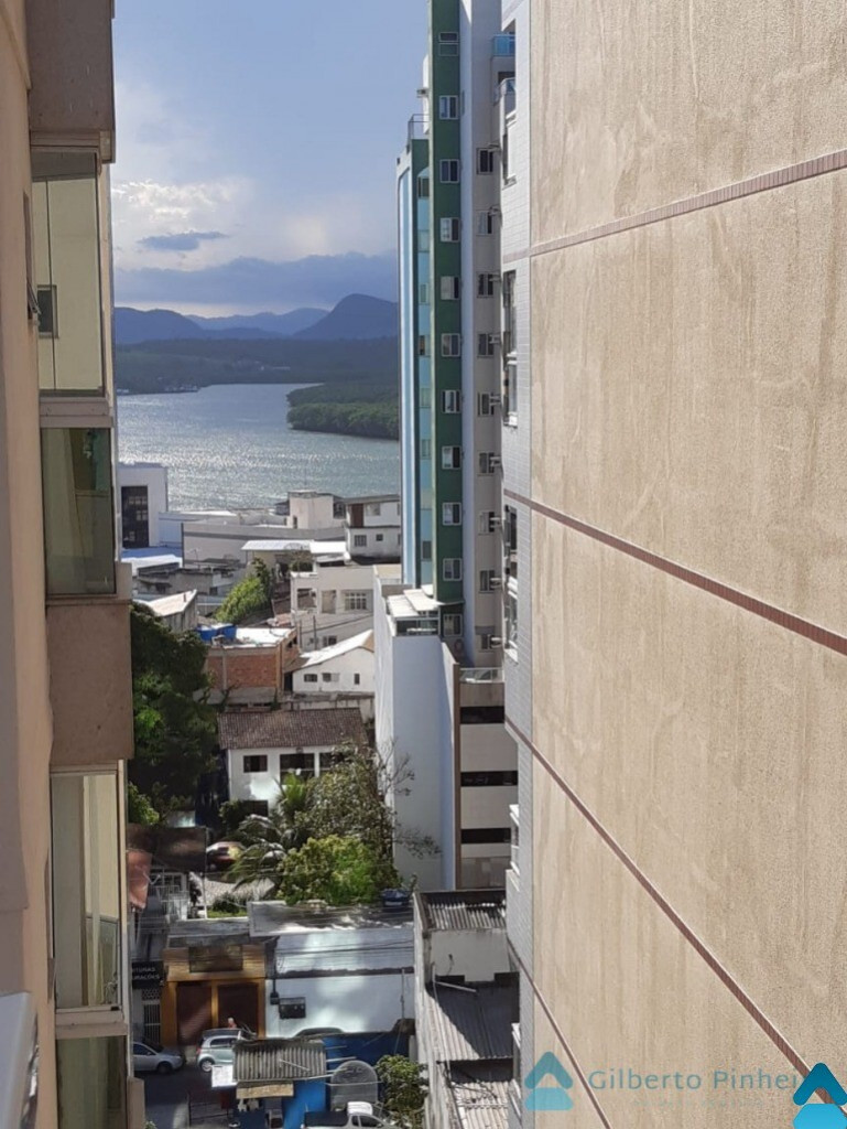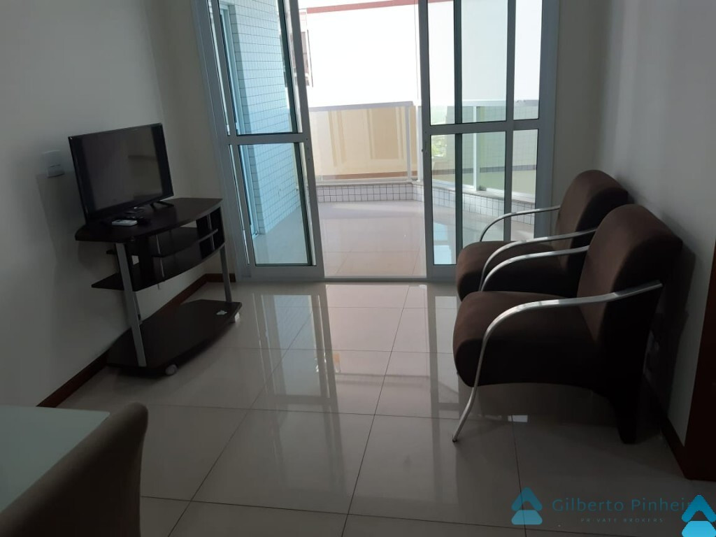 Apartamento para aluguel temporada no Centro de Guarapari composto de 2 quartos sendo uma suíte, sala de estar, cozinha, banheiro social, varanda, área de serviço, lateral, mobiliado, portaria 24 horas, 2 elevadores e uma vaga de garagem.