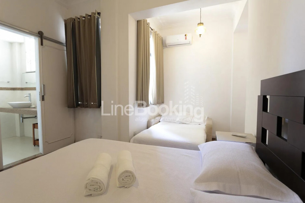 Suite 1: Cama de casal + cama de solteiro, ar condicionado (frente mar)