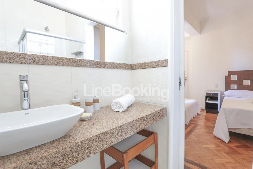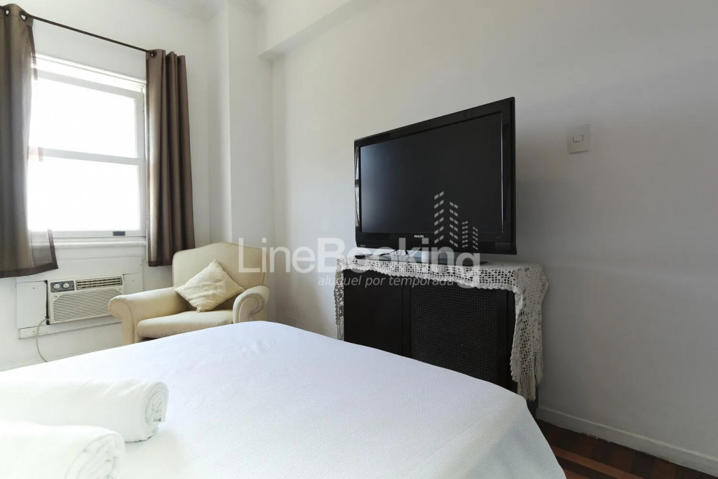 Modernizado recentemente, dispõe de grande hall de entrada com piso em mármore e um salão com ampla sala vista mar e para a principal Avenida do Bairro, a Av.. Nossa Senhora de Copacabana. Cozinha completa, planejada, com todos os aparelhos e utensílios necessários a seu conforto.
