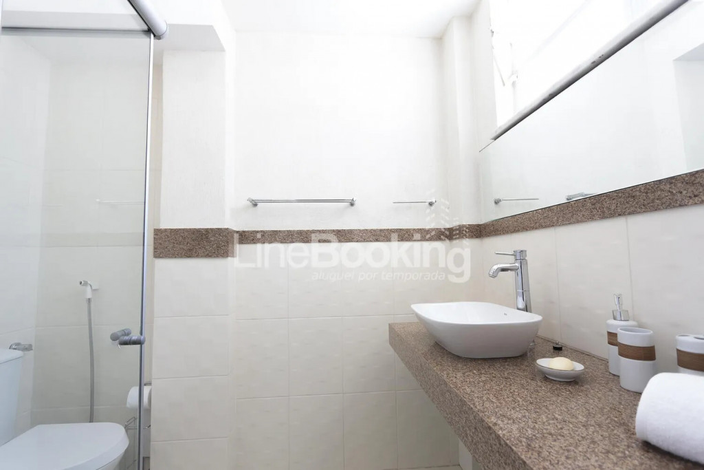Lavabo: Finamente acabados, com ducha manual, mármores e granitos