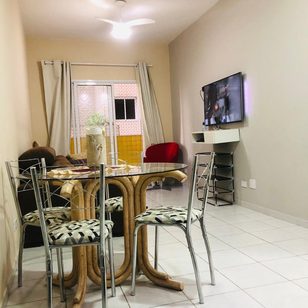 Lindo e aconchegante , a 150 metros da praia no canto do forte, todo mobiliado com 02 camas de casal, ventiladores de teto, tv smart com NETFLIX, sala com sacada, area de servico com maquina de lavar, banheiro com box, tela em todo o apto para maior seguranca as criancas, cozinha toda planejada, 01 vaga, portaria 24 hs . Me liga 11-9.92004500 Elaine