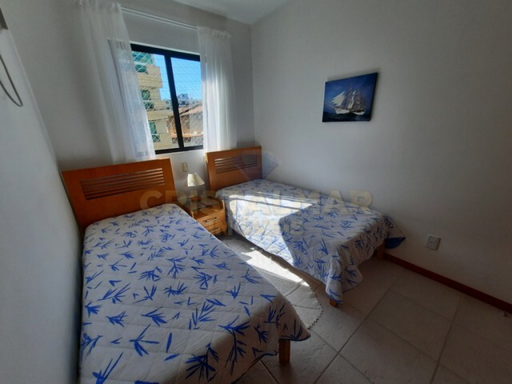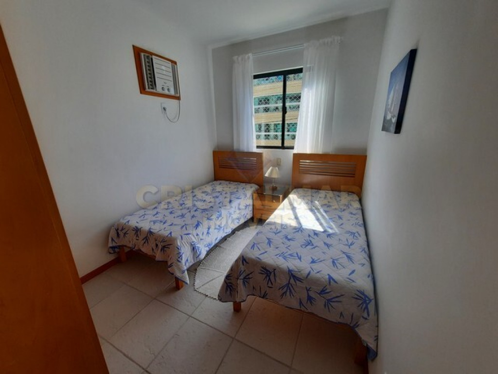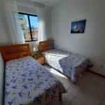1 dormitório com duas camas de solteiro, ar condicionado de janela e roupeiro;