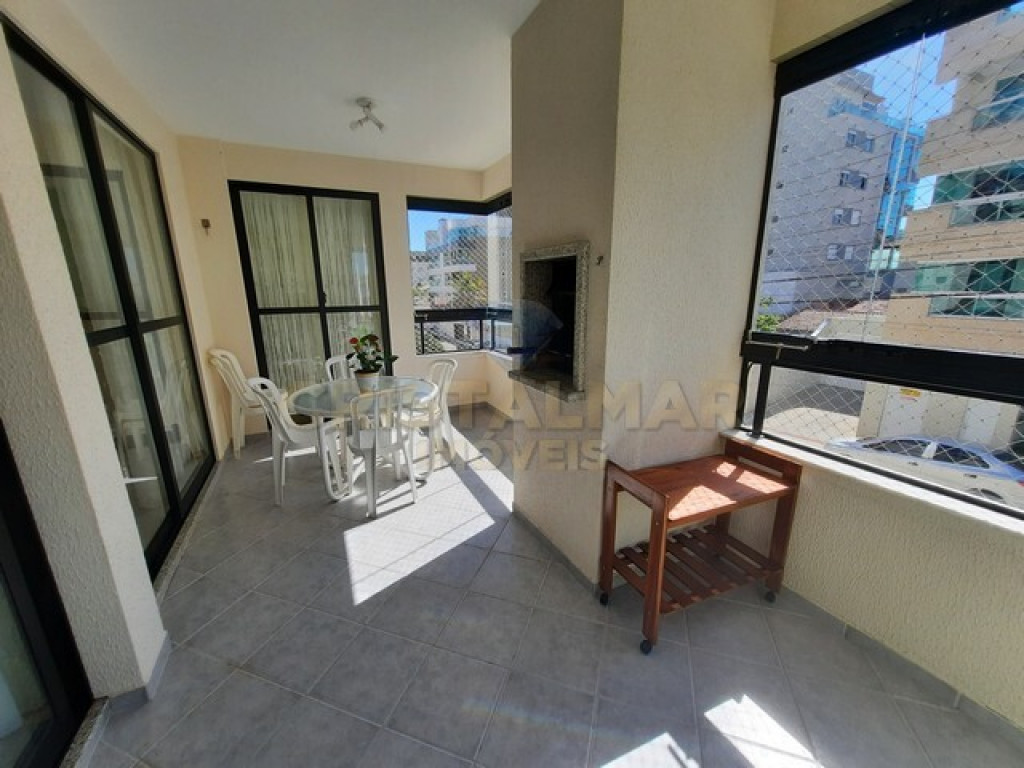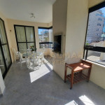Área de lazer com churrasqueira e mesa com 4 cadeiras;