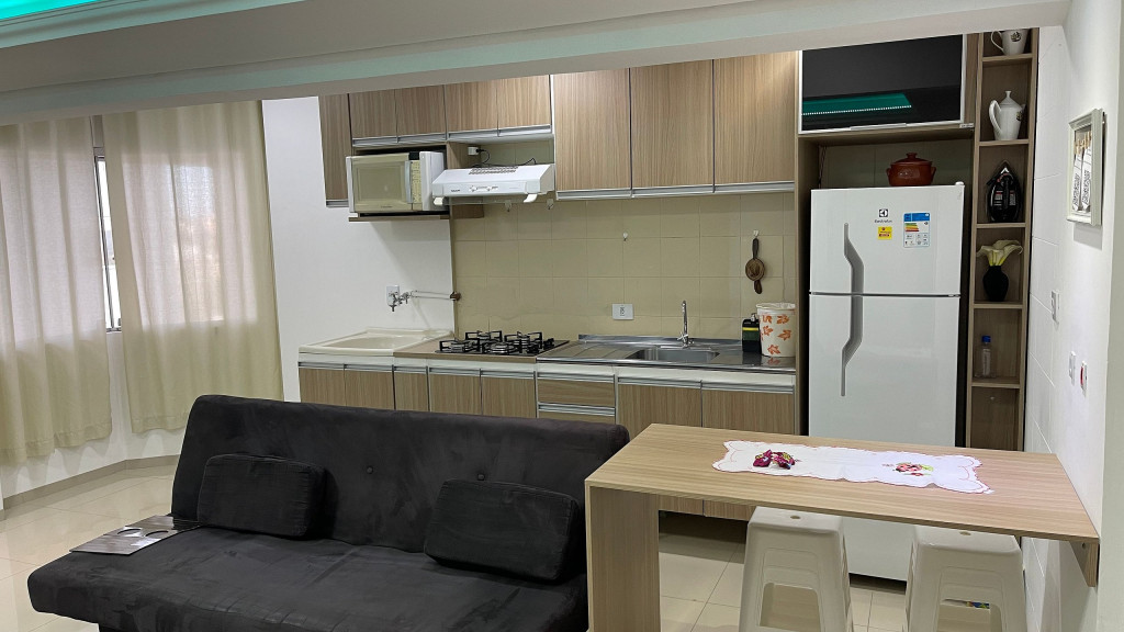 Este apartamento único e acolhedor está localizado na região central da cidade, próximo a supermercados, bancos, farmácias, restaurantes, terminal de ônibus urbano, lavanderia, lojas e comércio em geral. Todo reformado, eletrodomésticos novos! Acomoda até 6 pessoas, 2 no quarto + 2 em sofá cama na sala + 2 em colchão de casal em espuma (D20) na sala.