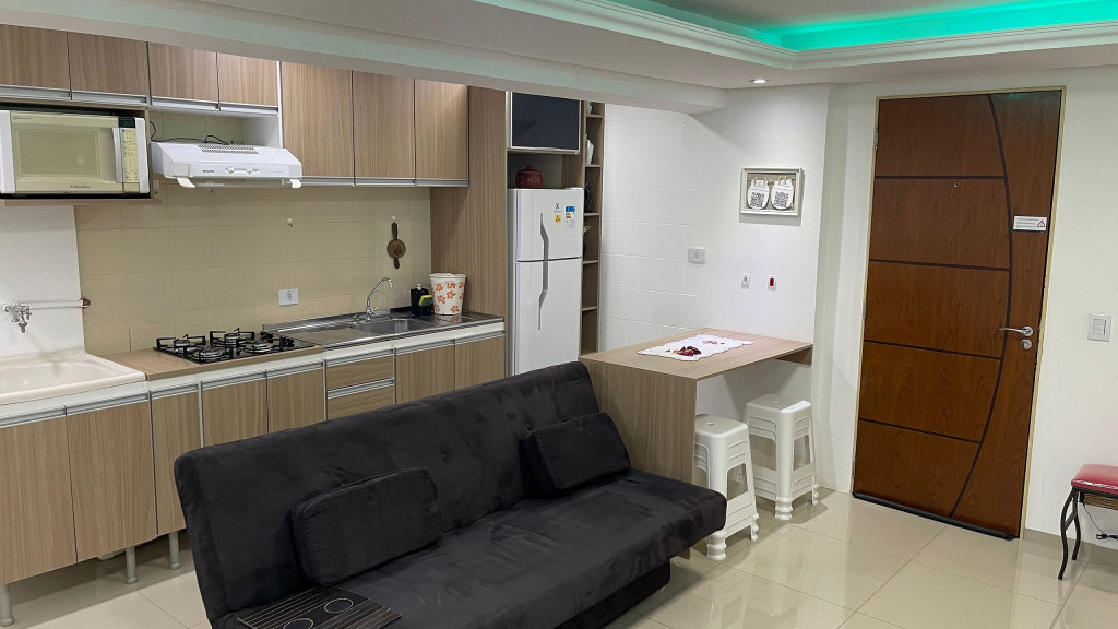 O apartamento se encontra na região central de Foz do Iguaçu, podendo encontrar todas as facilidades, na região, a pé da para ir a mercado, farmácia, restaurante, banco, lanchonetes (pizzarias, hamburguerias, shawarmarias, cafés, entre outros), Terminal de Transporte Urbano (TTU) fica a 300 metros do edifício, nele se pode pegar ônibus para toda a cidade, para todos os atrativos e até para o Paraguai e Argentina, de forma fácil e rápida. Ponto de taxi na esquina do prédio e, acesso fácil a aplicativos de carona tipo Uber, 99, Garupa, todos atendem em Foz do Iguaçu.Apartamento todo reformado, com janelas blindex mantendo o ambiente sem ruído externo, acomoda até 6 pessoas: 2 no quarto + 2 em sofá cama na sala + 2 em colchão de casal em espuma (D20) na sala. Com acesso a internet, com pontos de USB na cabeceira da cama de casal no quarto, não há máquina de lavar, mas há lavanderias na mesma quadra do edifício e também salão de beleza e barbearia.