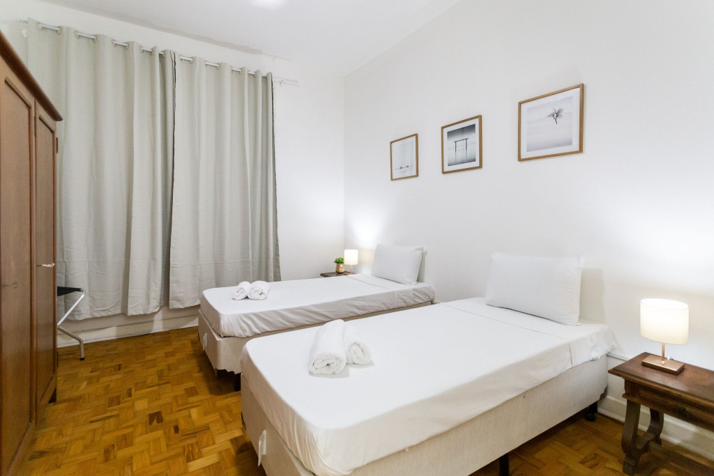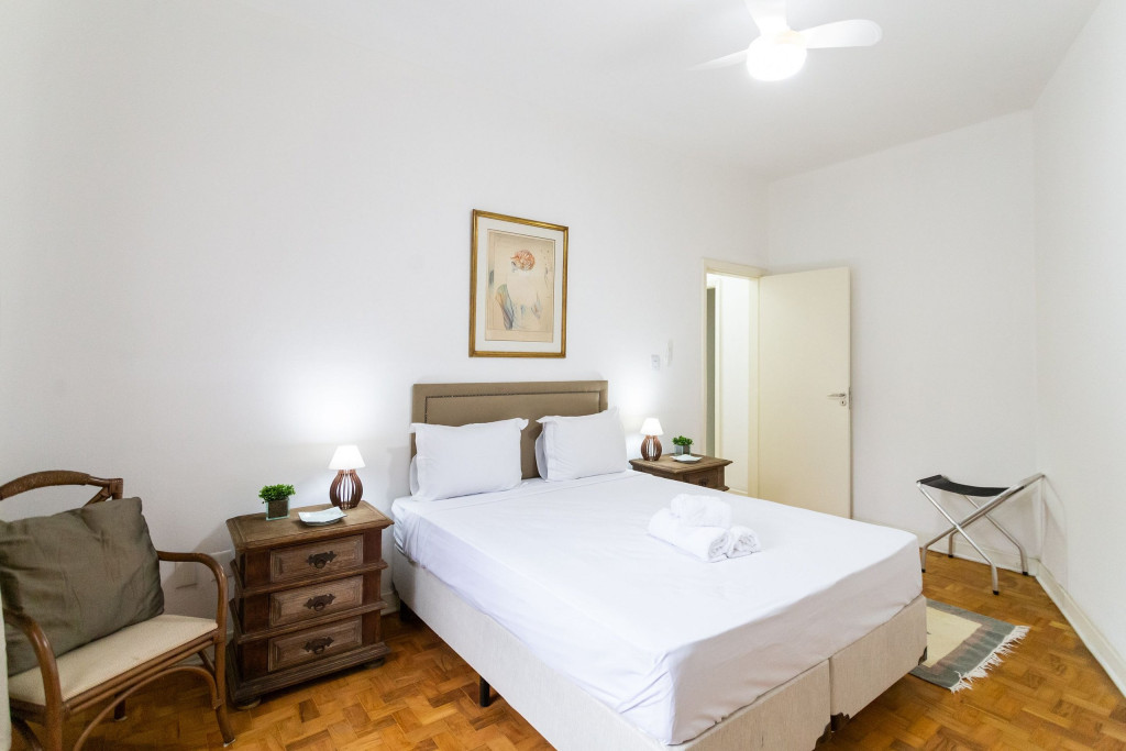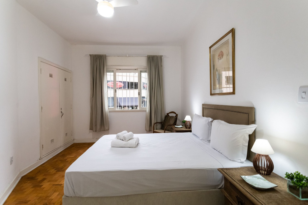 Todos os quartos contam com ventilador e cortina blackout. Dispomos também de WI-FI de alta velocidade.Na área de serviço, temos uma máquina lava e seca para uso dos hóspedes.Não disponibilizamos garagem, mas é possível estacionar o carro no estacionamento BC Park a 1 minuto do apartamento.