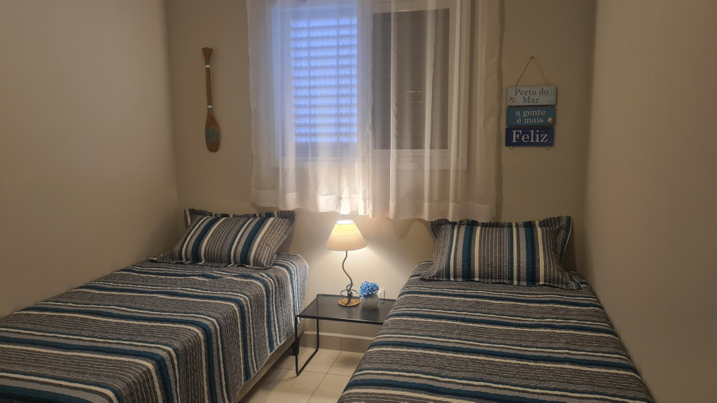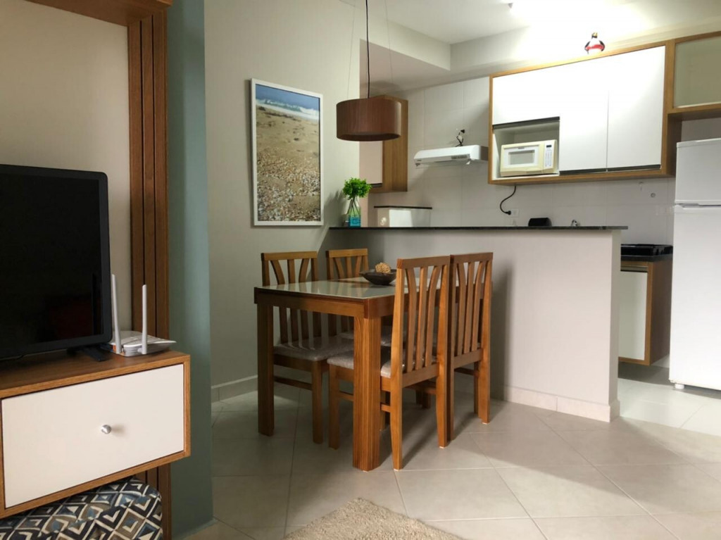 Apartamento super novo próximo do Projeto Tamar (210 mts) e de tudo de bom que a cidade oferece. São 2 dormitórios, sendo uma suite, 2 banheiros completos incluindo secador de cabelo, ar condicionado em todos os cômodos, varanda gourmet, wi-fi, Smart TV com streaming, garagem demarcada e coberta. Aceita pets.
