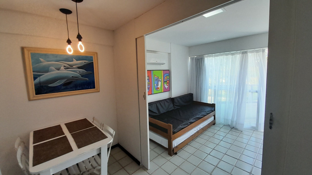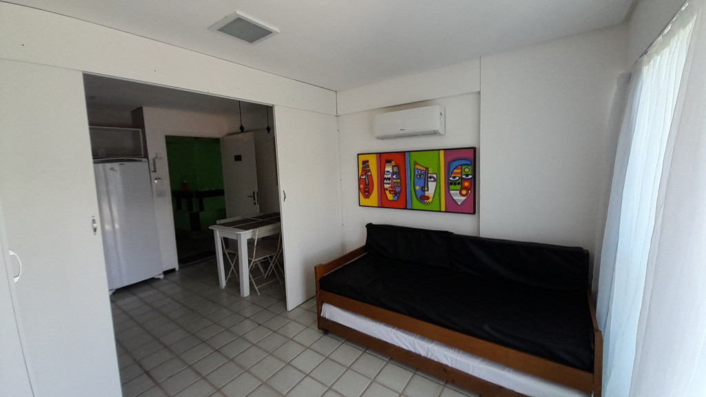 Apartamento com Sala, varanda, cozinha, banheiro e quarto climatizado em Condomínio a beira Mar, apenas alguns minutos da Vila de Porto de Galinhas