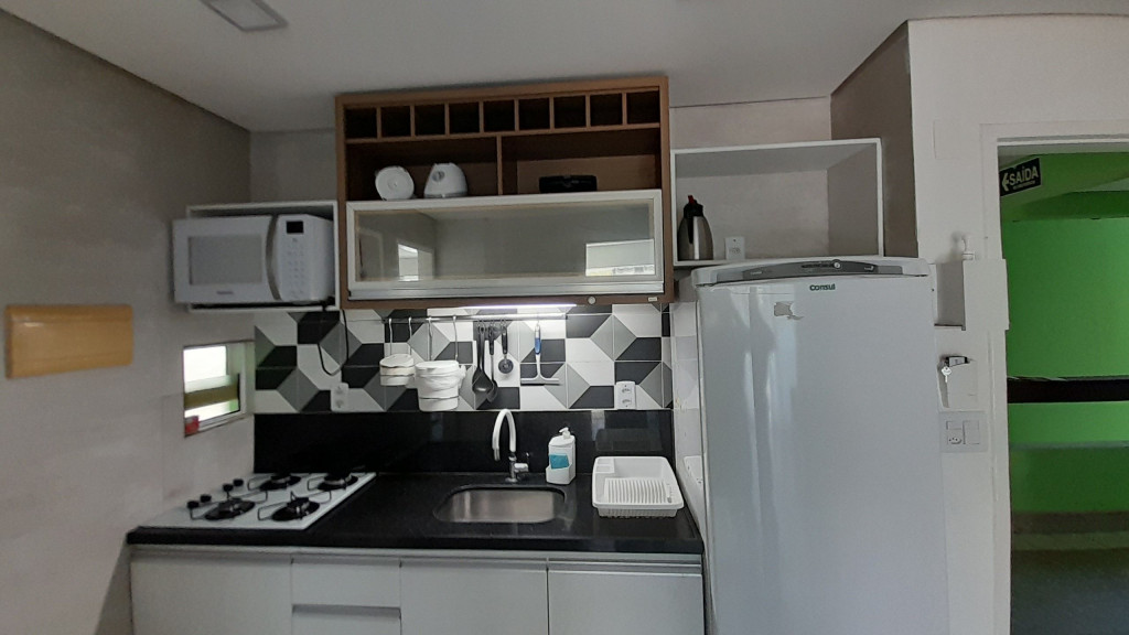 Unidade climatizada equipada com itens básicos de cozinha podendo acomodar até 6 hospedes