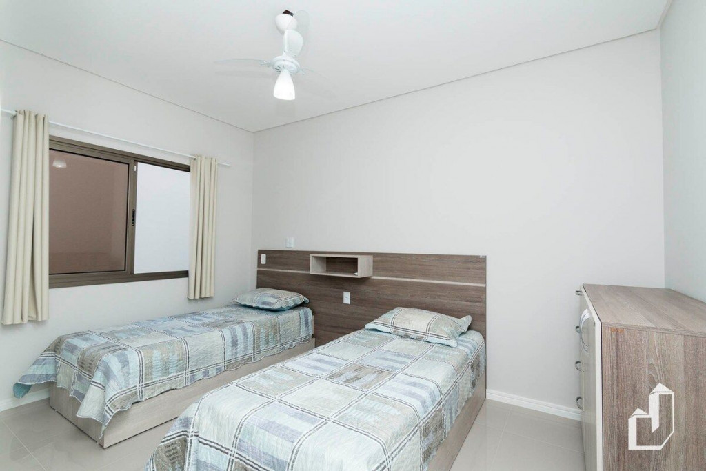 01 dormitório com 02 camas de solteiro + 01 cama auxiliar de solteiro com ar-condicionado quente/frio.