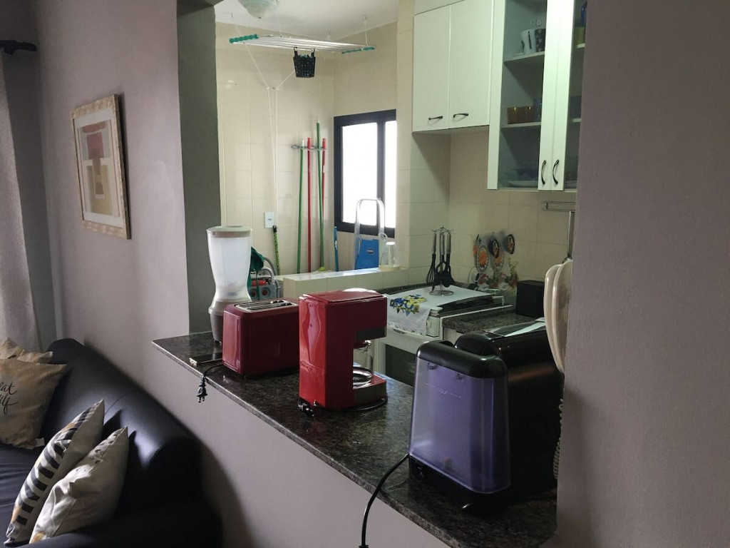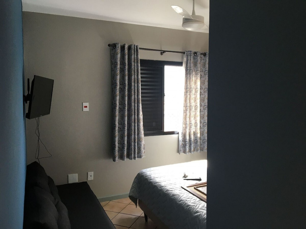 O apartamento é bem iluminado, aconchegante, tem piscina e com vista para o mar em local privilegiado na Praia de Enseada, próximo também de mercados, bares e restaurantes.