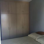 1°: Uma suíte com uma cama de casal, armário e vista para o mar.