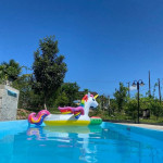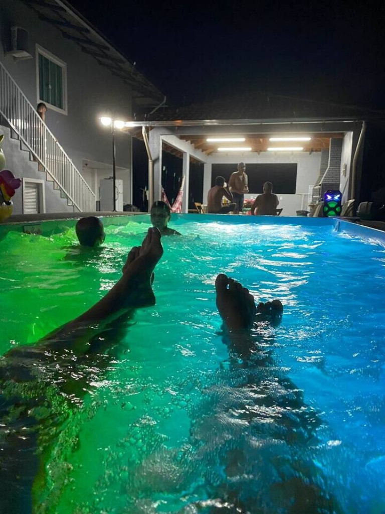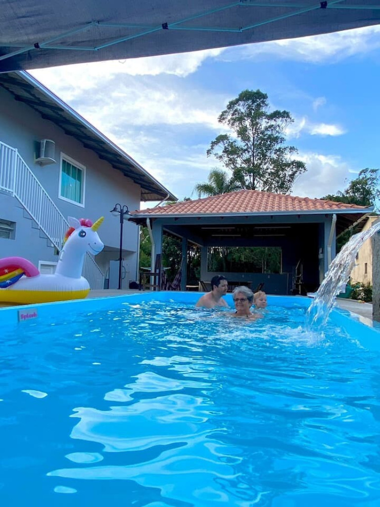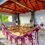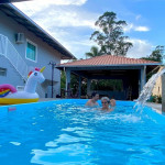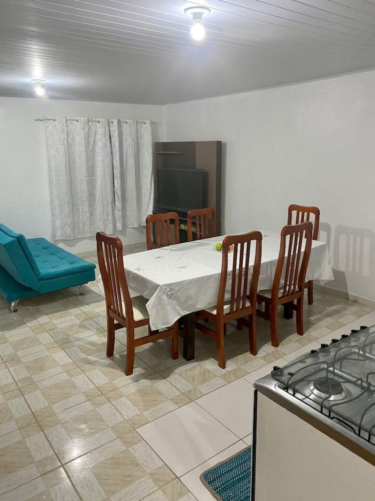 A Casa conta com piscina, churrasqueira e lavanderia compartilhada e completa para morar.