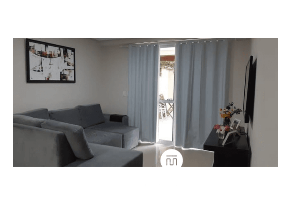 Sala de Estar: Sofá, TV Samsung 40’’ com Smart Box Premier e Ar-Condicionado.