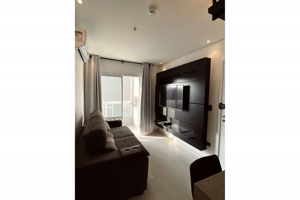 Apartamento no Boqueirão a 50 metros da Praia1 Dormitório com ar condicionado, cama de casal e guarda roupasSala com TV 55", canais a cabo e NetflixInternet Wi-Fi 200GbCozinha totalmente equipadaBanheiroUma linda varanda com churrasqueiraLindamente decorado, com 1 vaga de garagem e 2 elevadoresPróximo de tudo, a menos de 100 metros tem o centro comercial de Praia Grande, a 5 minutos da nova feirinha de artesanatoCom piscina