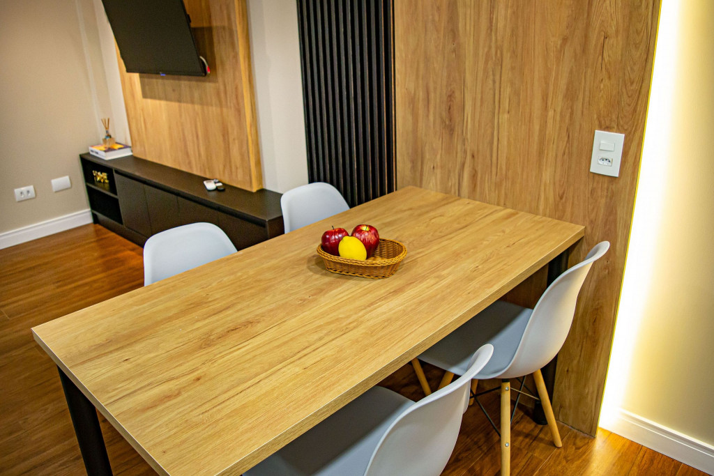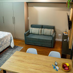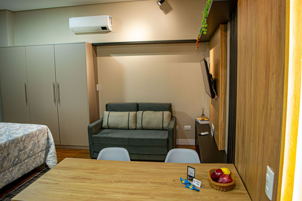 Seus apartamentos contam com cozinha equipada, Smart tv, cama confortável, ar-condicionado que refrigeram todo o espaço, central de trabalho/estudos, enxoval de cama e banho.