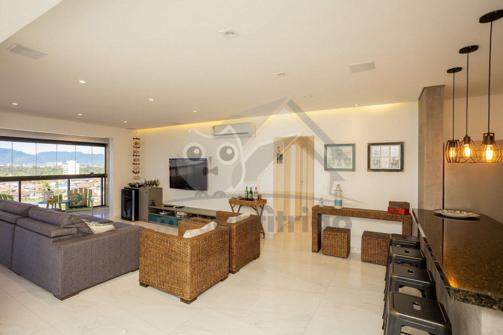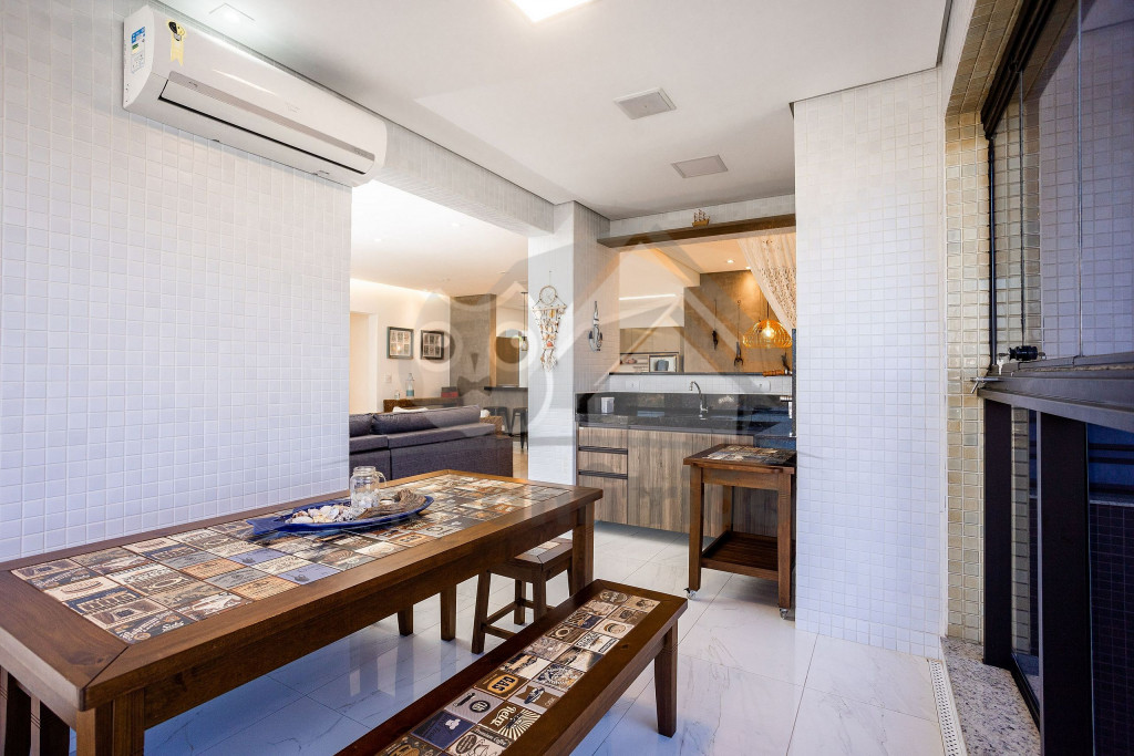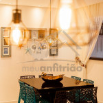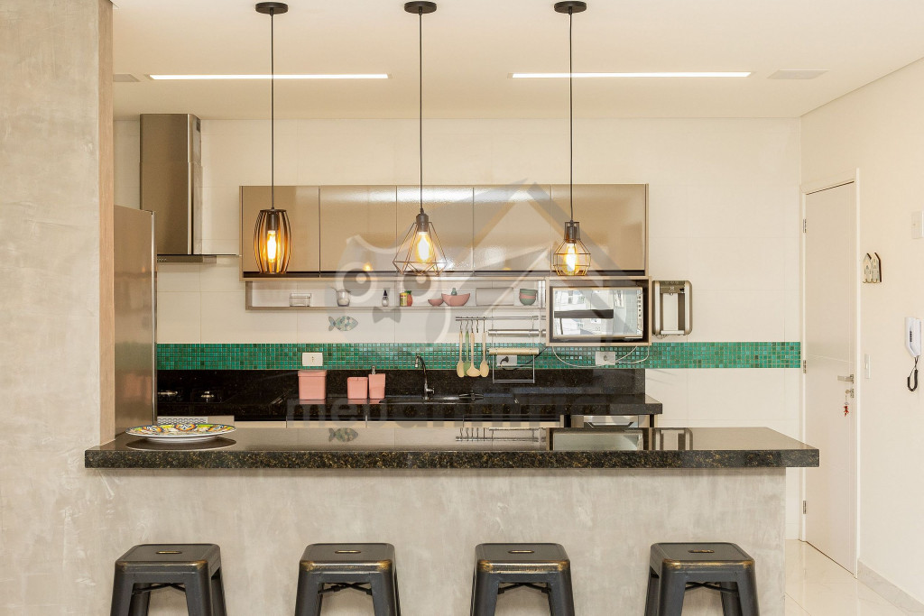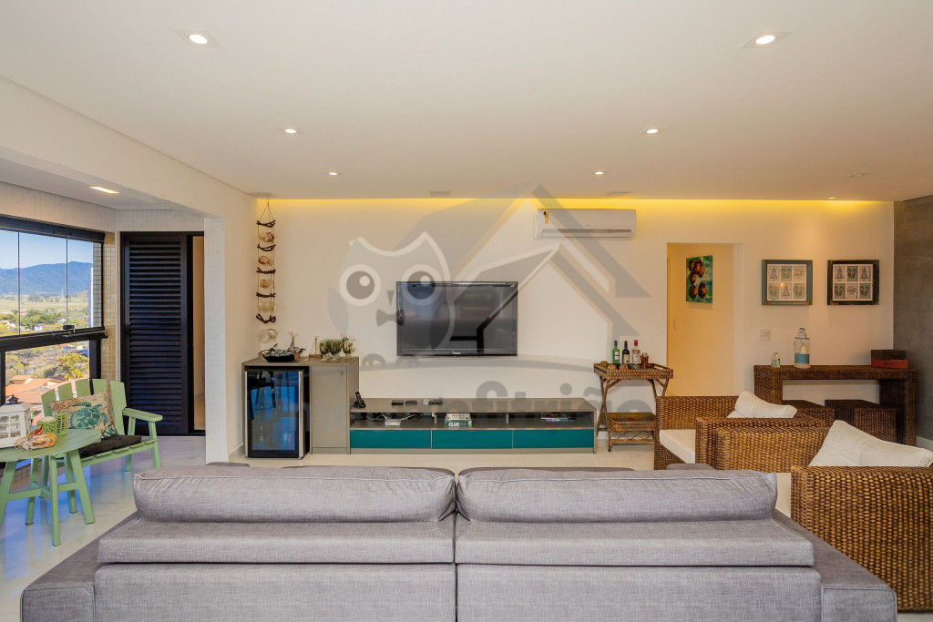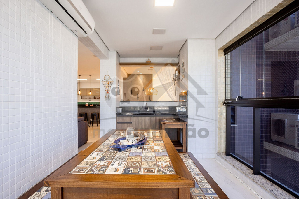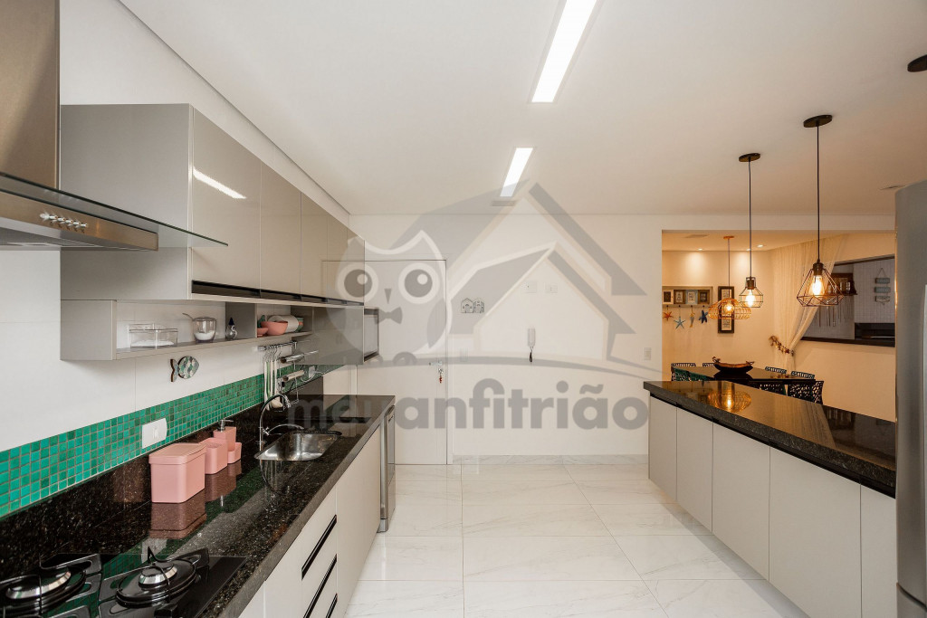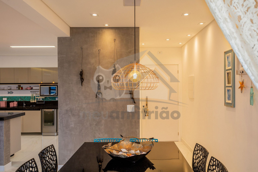 O espaço da sala de TV, sala de jantar, cozinha, varanda e área gourmet é em conceito aberto para maior integração dos ambientes. Possuímos TV na sala, na suíte e nossa internet é fibra de 100mb para quem precisar fazer home office.A cozinha é completa e possui todos os eletrodomésticos e utensílios necessários para a estadia. Contém geladeira, máquina de lavar louça, filtro, micro-ondas e até uma cervejeira.A área gourmet possui churrasqueira com vista para o mar e mesa estilo de piquenique para deixar a estadia ainda mais divertida.Oferecemos 2 vagas de garagem.