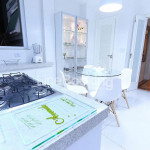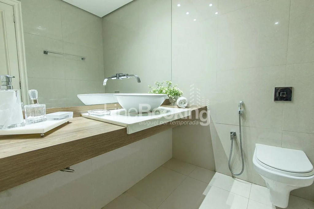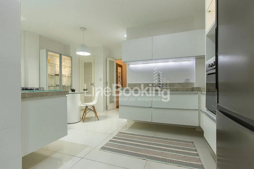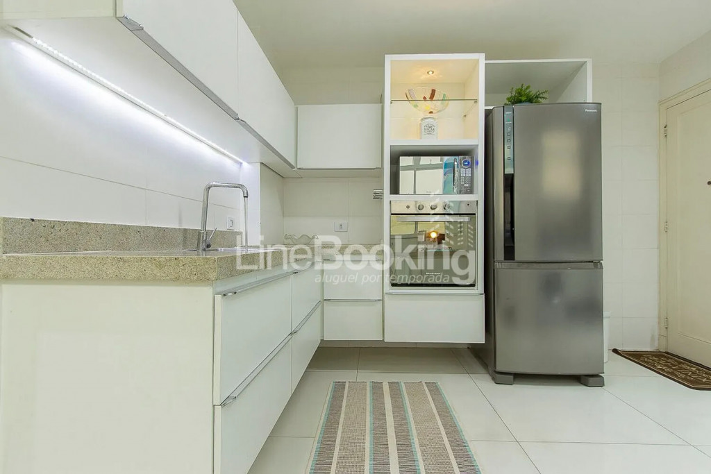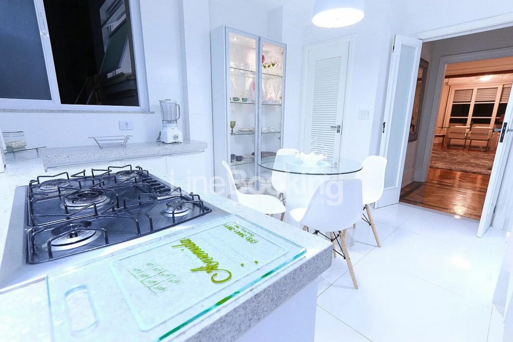 Cozinha planejada, maquina lava e seca, louças em porcelana, aparelho de jantar em inox, copos de cristais. Muito requinte ao seu alcance!