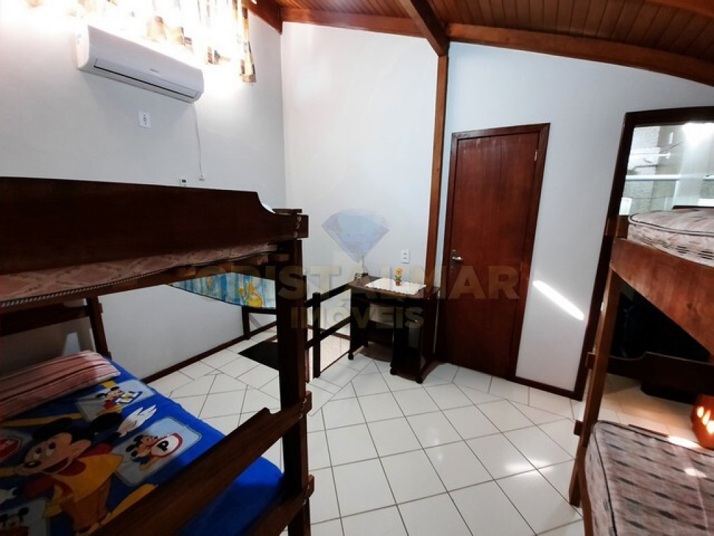 1 Demi suíte com 1 cama de casal e ventilador de teto e no outro 2 beliches e ar .