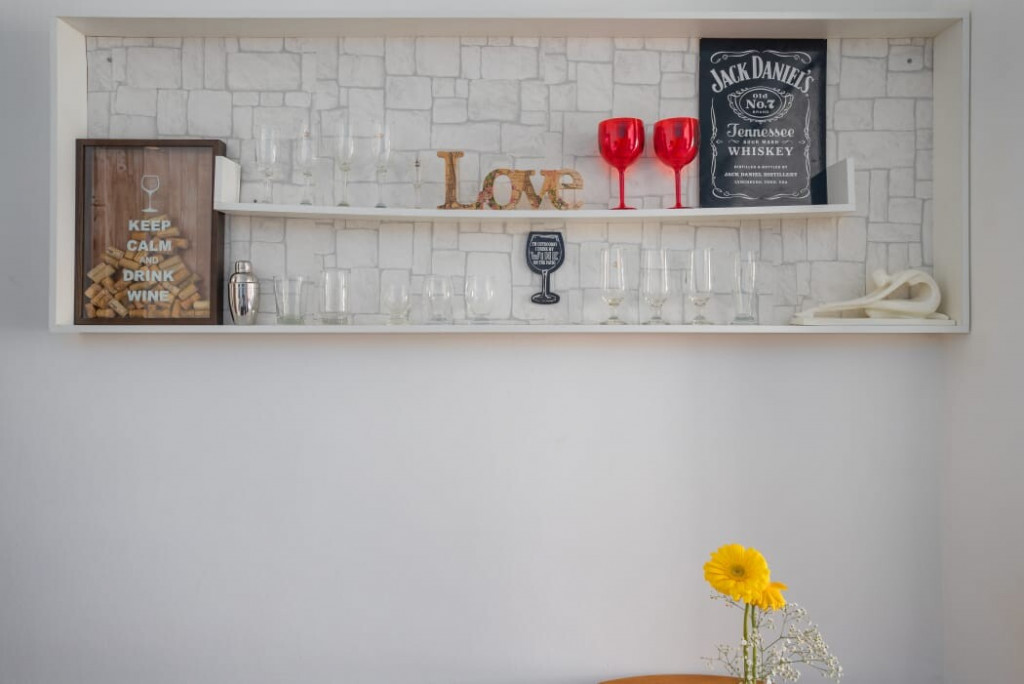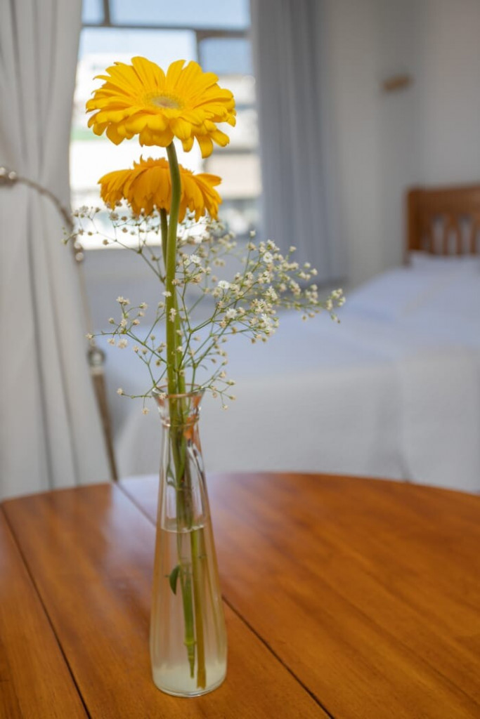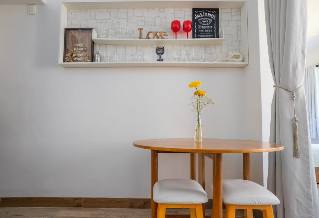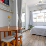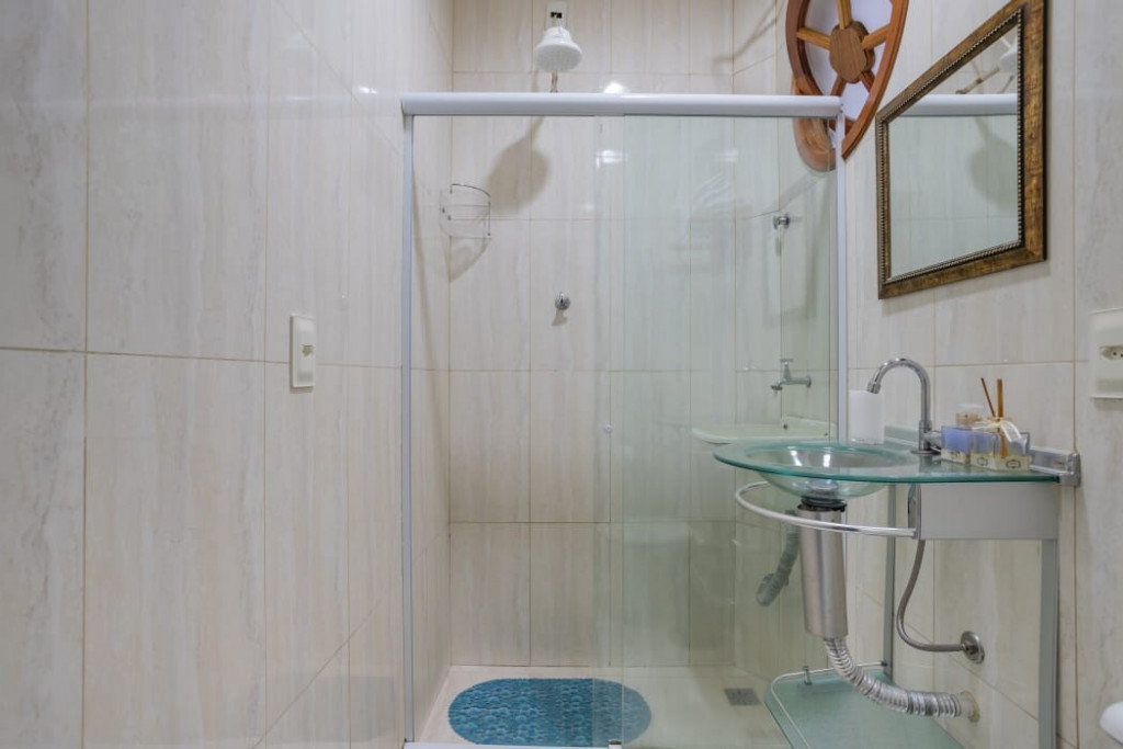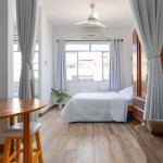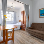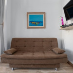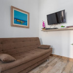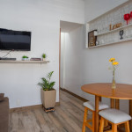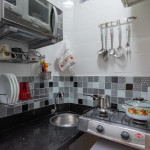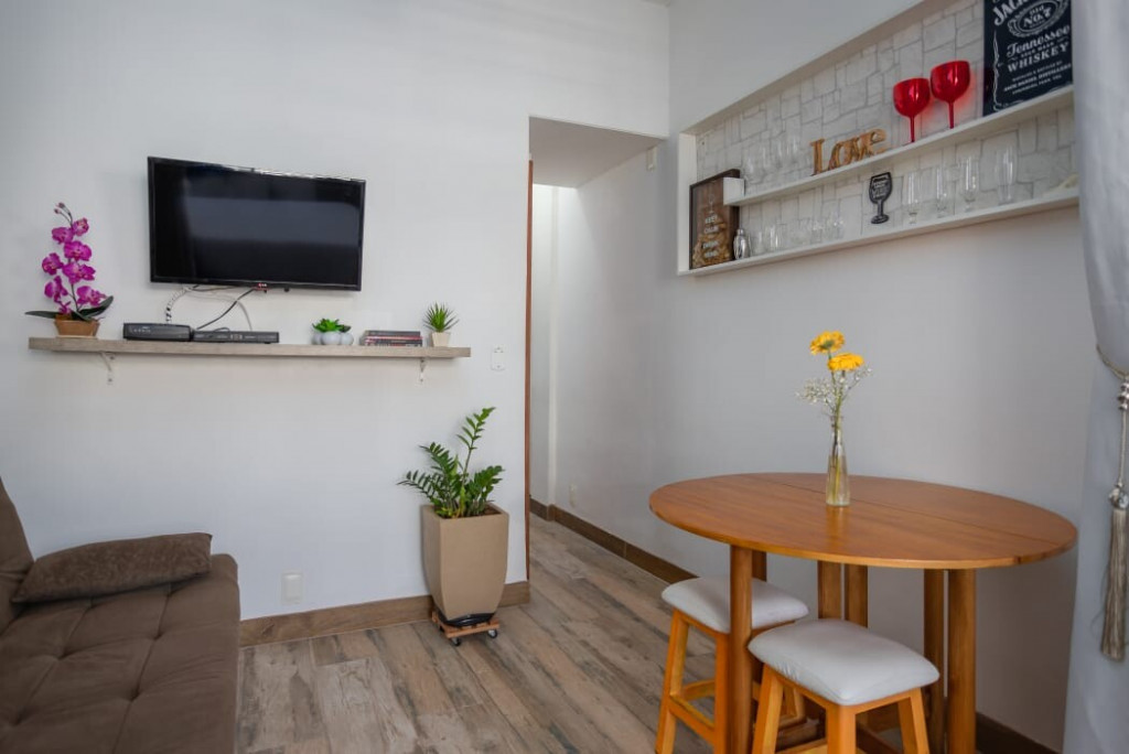 Flat completo com cama de casal, sofá-cama, ar condicionado.