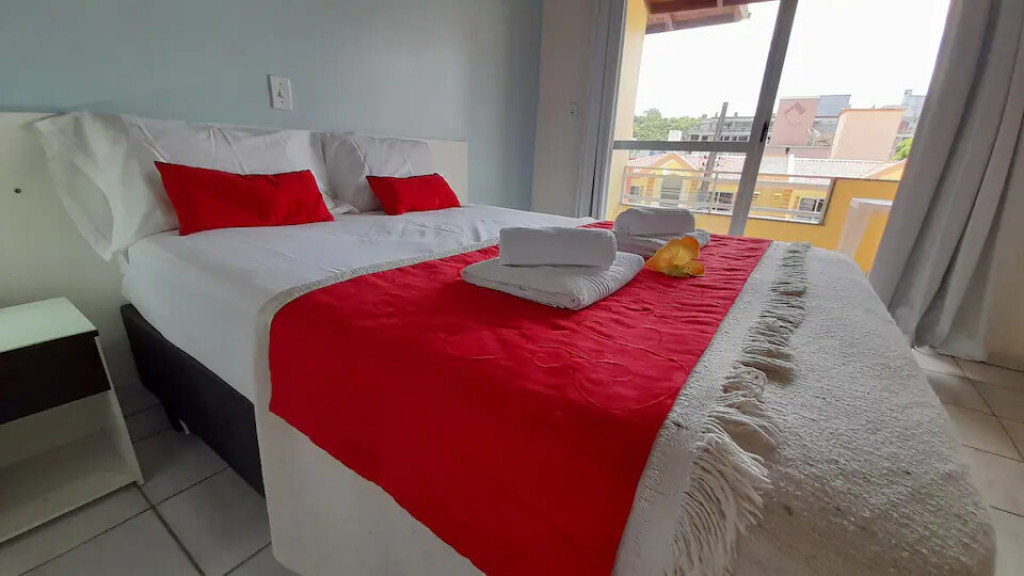 Nossas acomodações possuem sacada, quarto dispondo de cama de casal box, roupeiro, ar condicionado, cofre. A cozinha possui todos os utensílios necessários para preparar e servir refeições com o conforto do lar. Conta também com micro-ondas, fogão geladeira e pia. A sala é integrada com a cozinha e dispõe de TV, e um confortável sofá-cama (dormem 2 pessoas separadas). Churrasqueira individual por apartamento. Oferecemos roupa de cama e/ou banho com custo adicional (opcional)