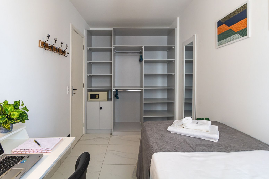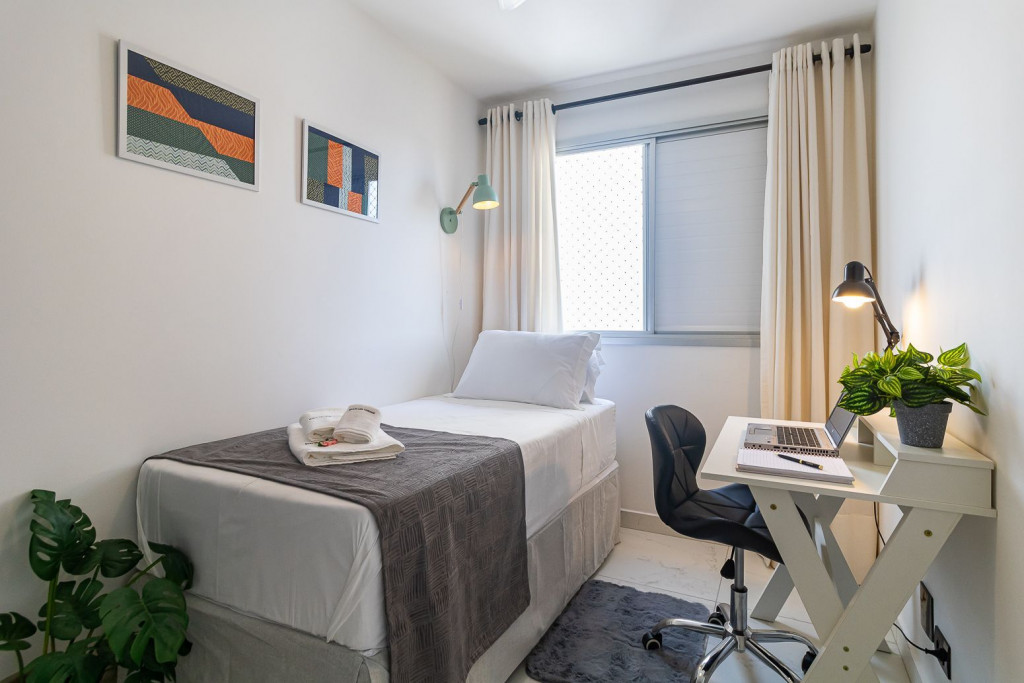 O apartamento moderno de 40m² está localizado em Santana, um bairro tradicional e bem localizado. Sendo o espaço ideal para uma estadia na cidade de São Paulo, pois conta com fechadura digital, Smart TV de 43" com Netflix, cama queen size, ventilador de teto, internet ultra-veloz, mesa de trabalho, rede de proteção nas janelas, cozinha completa com máquina nespresso, banheiro com secador de cabelo. O prédio disponibiliza também academia, piscina, salão de jogos, mercadinho e vaga de garagem.
