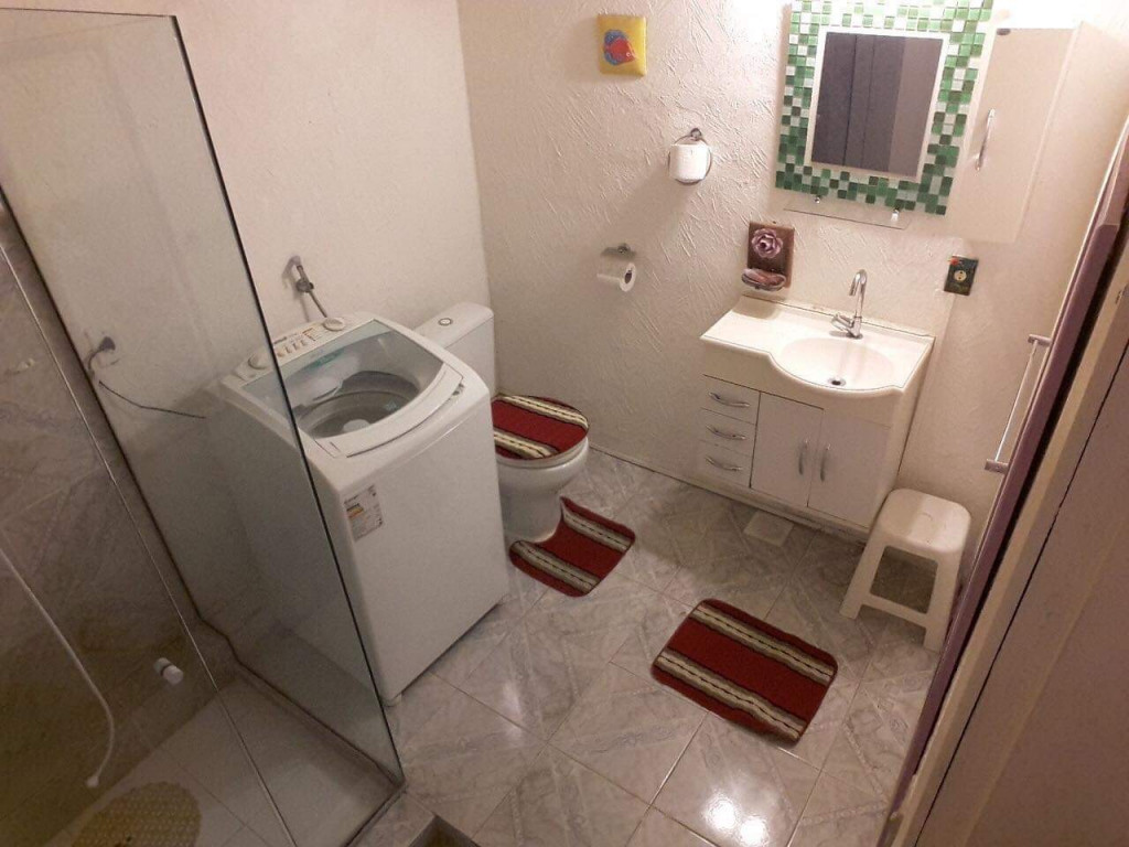 Banheiro completo, area de servicio con lavadora de roupas automatica.