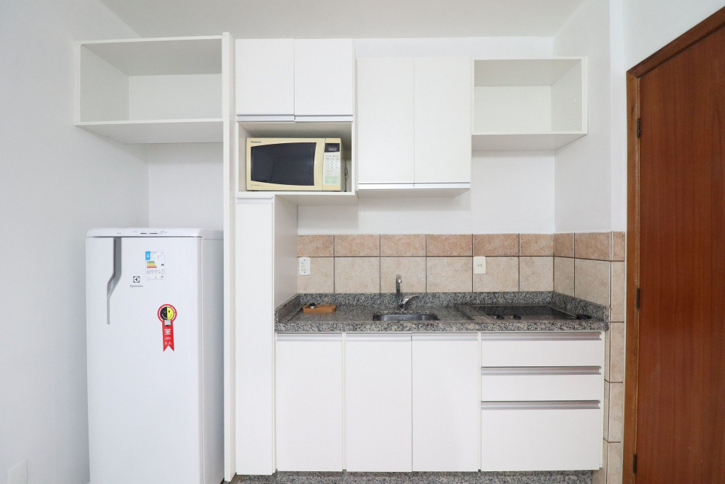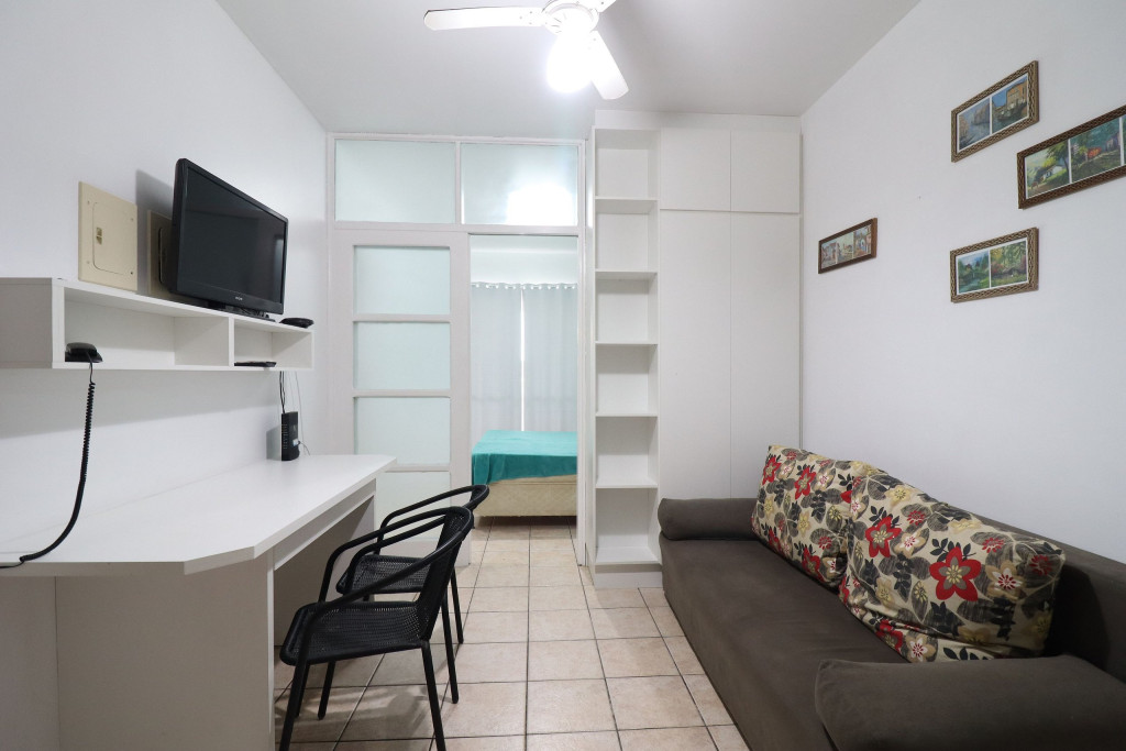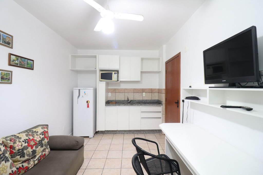 Apartamento Luxo - 01 dormitório com cama de casal, ar condicionado, sala com sofá cama, TV e cozinha (minibar, microondas e fogão elétrico, itens básicos de cozinha) conjugada, 1 banheiro e sacada.