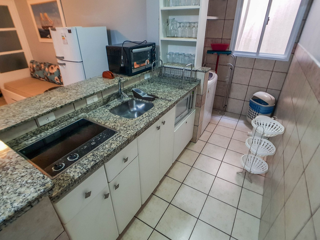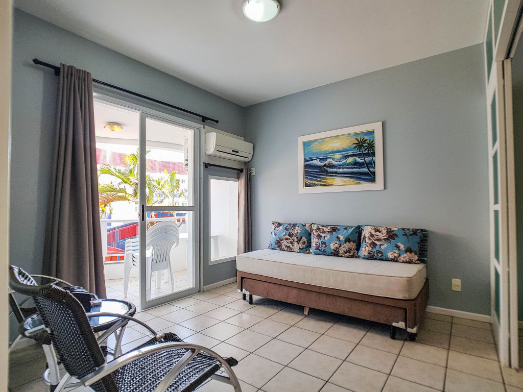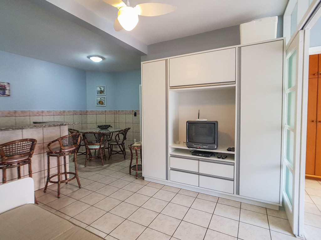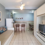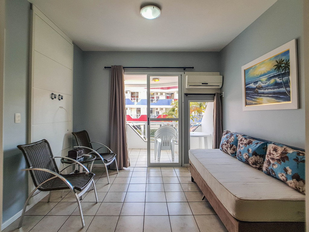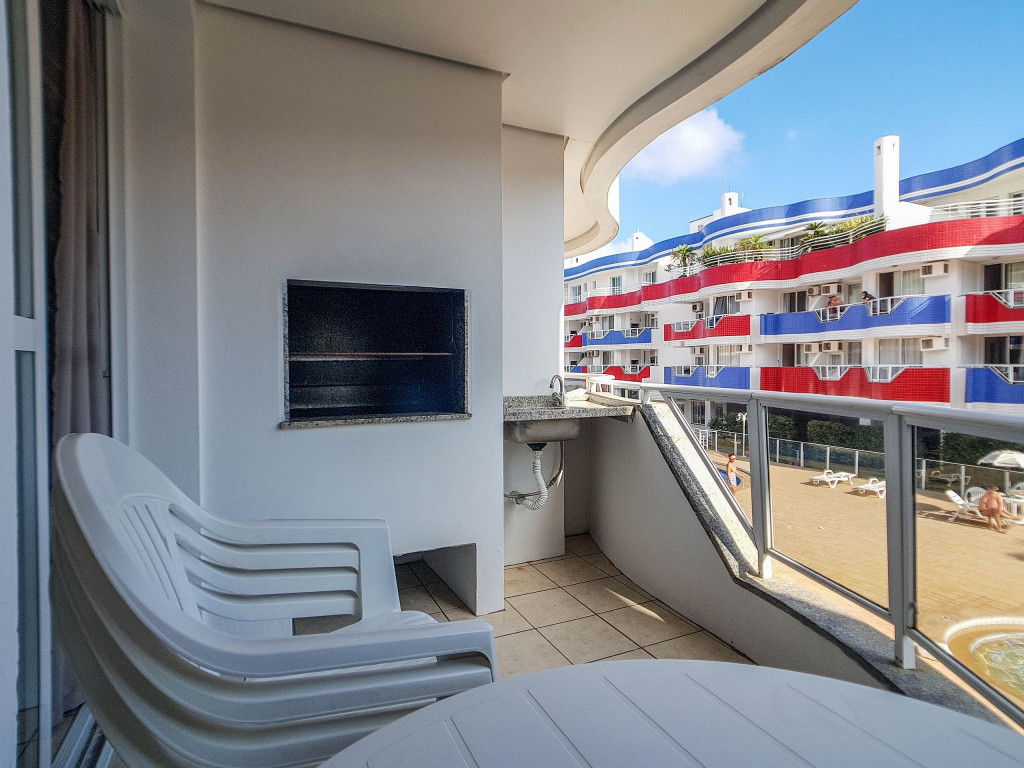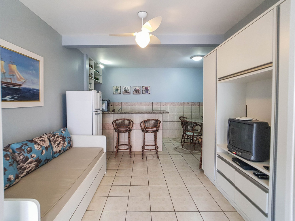 Apartamento Suite - 01 dormitório com cama de casal, ar condicionado, sala com 2 bicamas, TV e cozinha (geladeira, micro-ondas, fogão elétrico e itens básicos de cozinha) conjugada, 1 banheiro e sacada com churrasqueira.