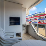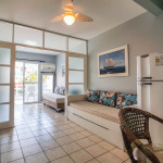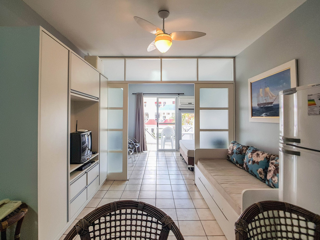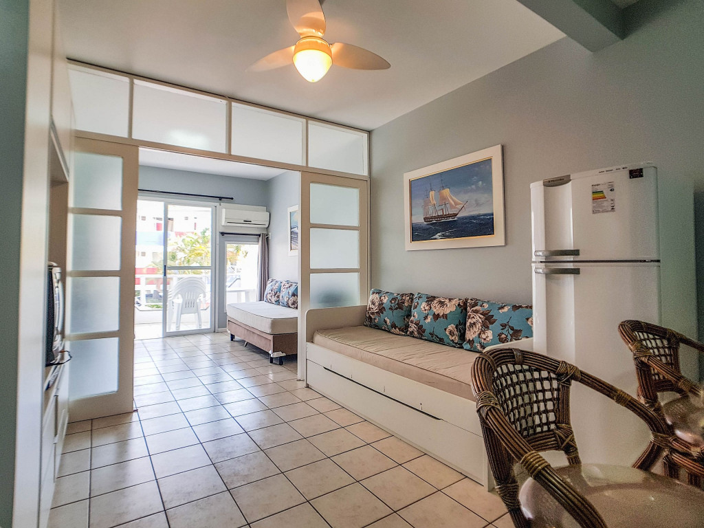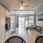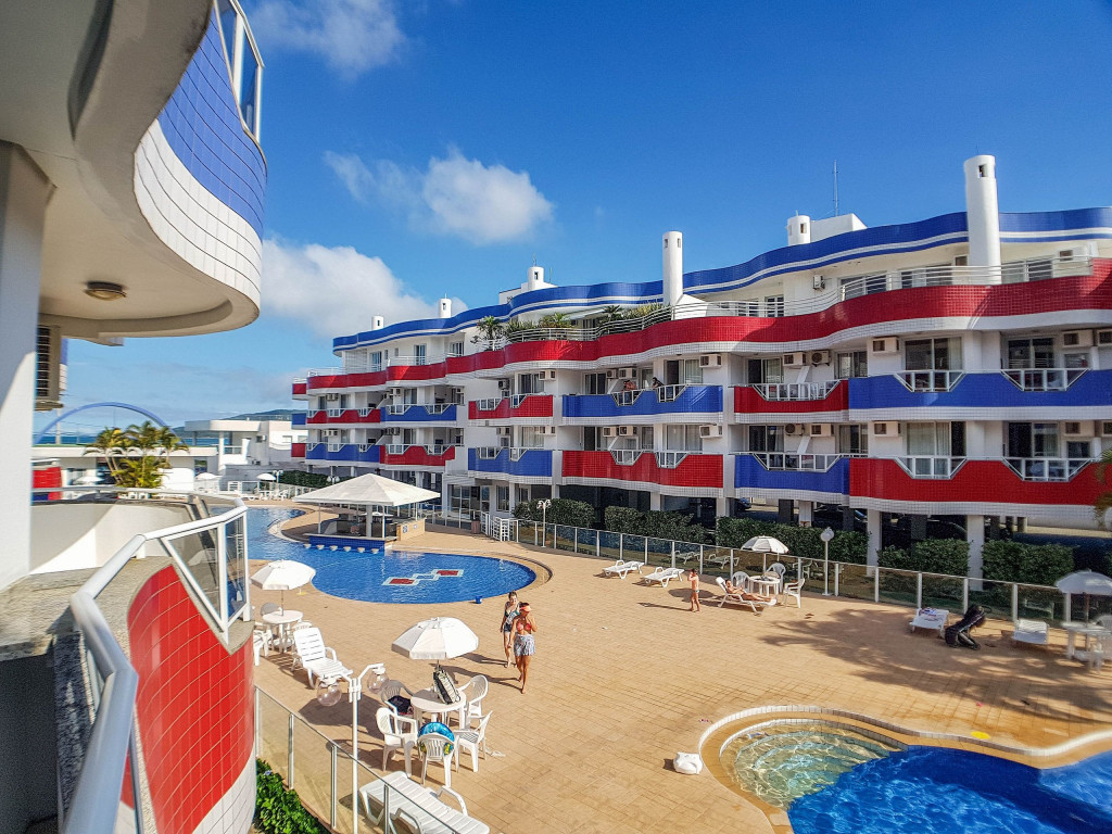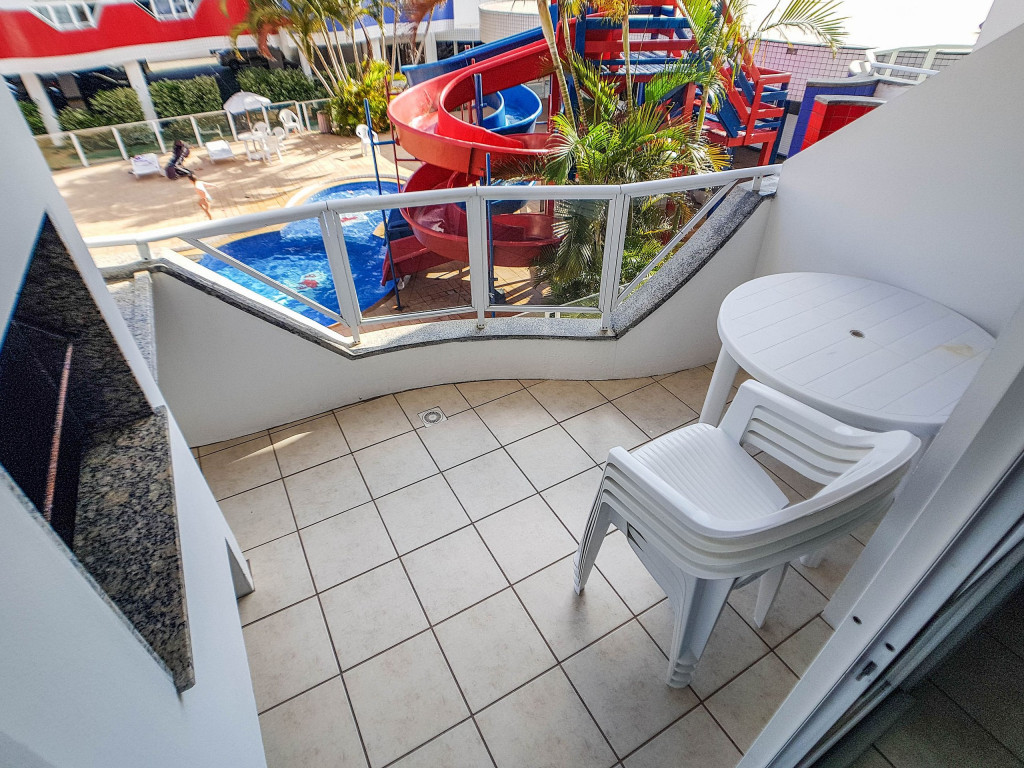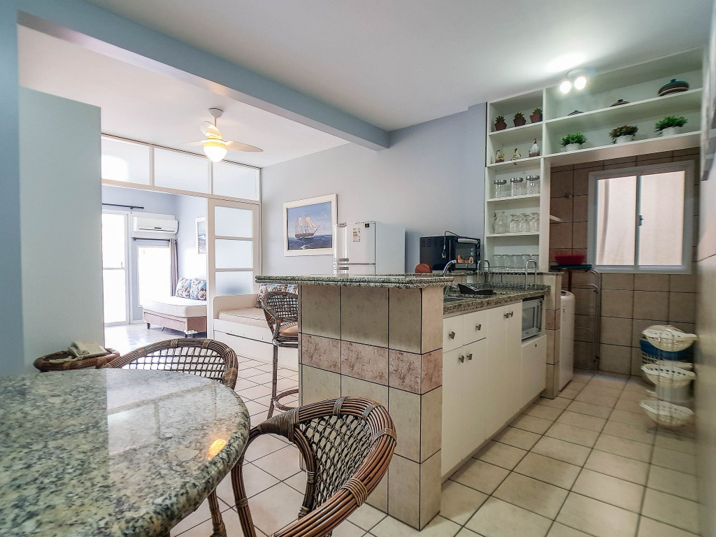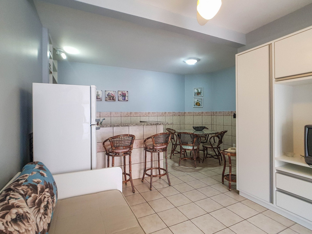 Apartamento Suite - 01 dormitório com cama de casal, ar condicionado, sala com 2 bicamas, TV e cozinha (geladeira, micro-ondas, fogão elétrico e itens básicos de cozinha) conjugada, 1 banheiro e sacada com churrasqueira.
