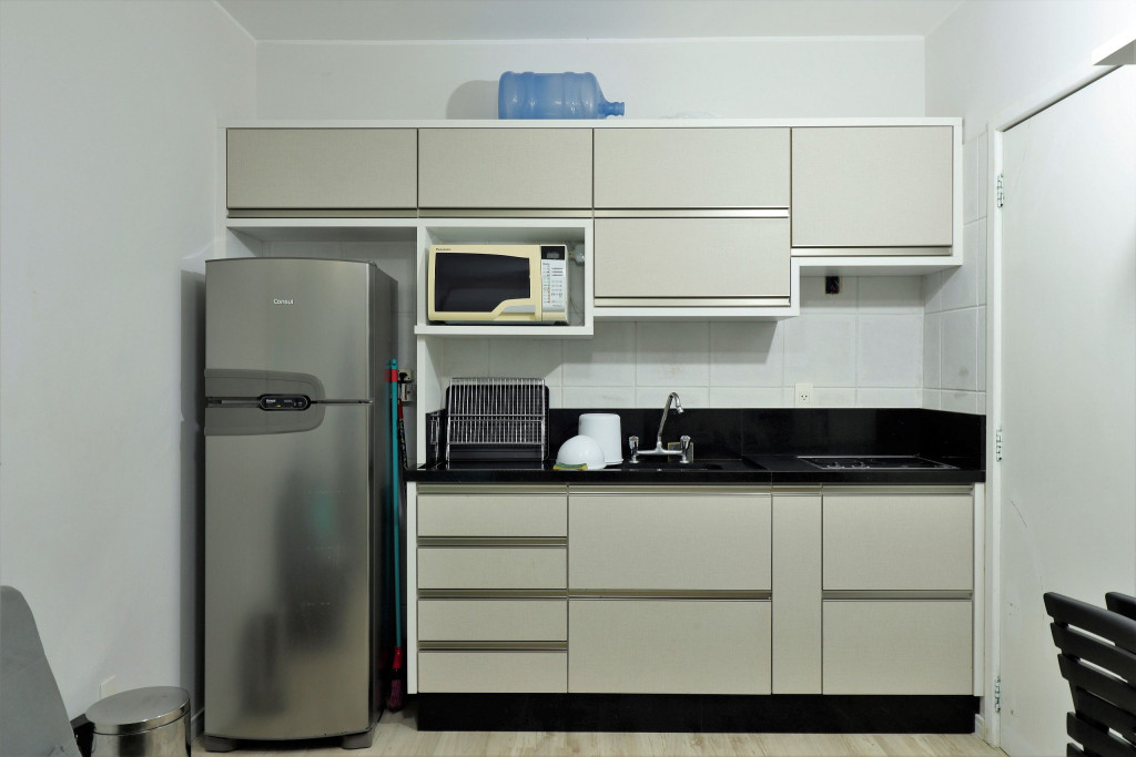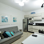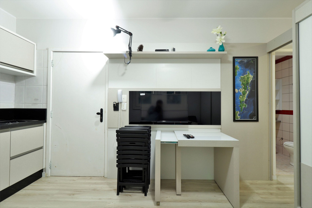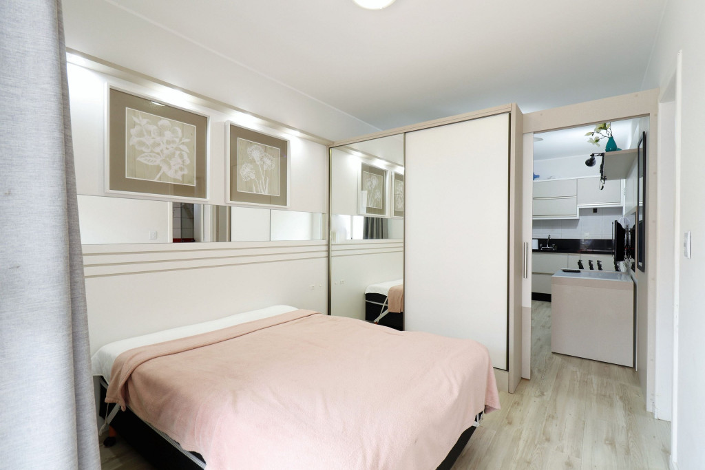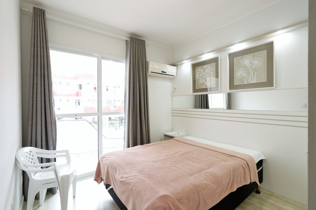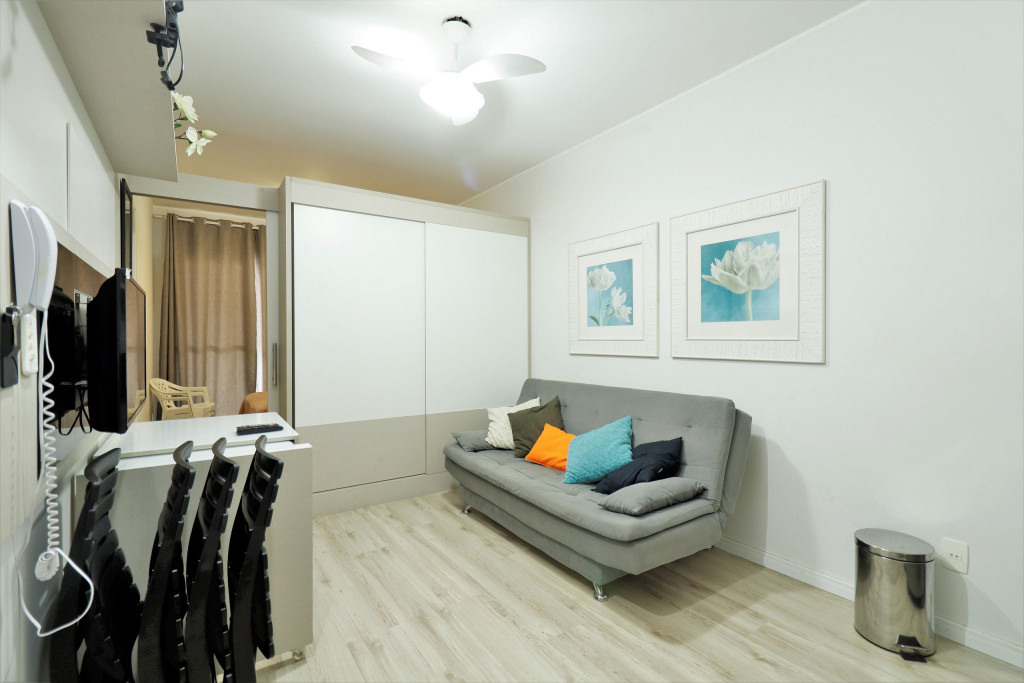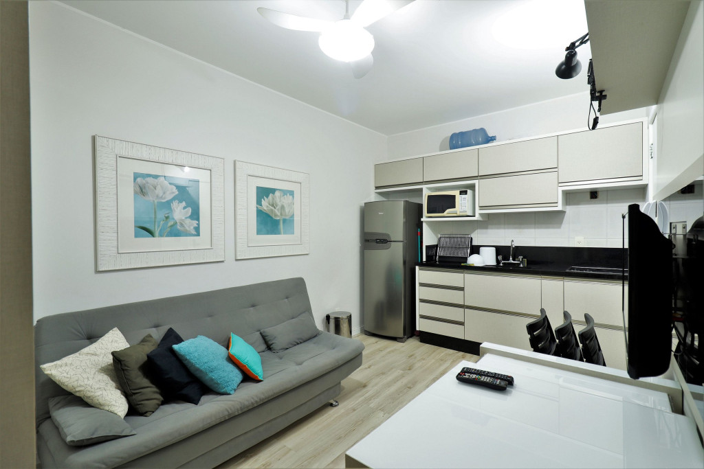 Apartamento Luxo - 01 dormitório com cama de casal, ar condicionado, sala com sofá cama, TV e cozinha (geladeira, microondas e fogão elétrico, itens básicos de cozinha) conjugada, 1 banheiro e sacada.