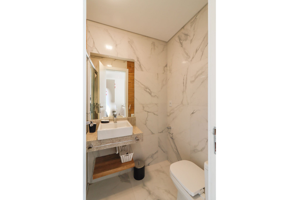 Os hóspedes podem usufruir das piscinas externas e aquecida, sauna, sala de jogos, pequena academia, playground, campo para futebol/vôlei, salão de festas e espaço com churrasqueiras (uso do salão e churrasqueira mediante a reserva).