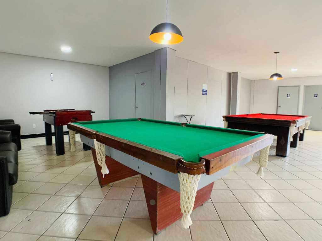 Os hóspedes podem usufruir das piscinas externas e aquecida, sauna, sala de jogos, pequena academia, playground, campo para futebol/vôlei, salão de festas e espaço com churrasqueiras (uso do salão e churrasqueira mediante a reserva).