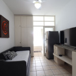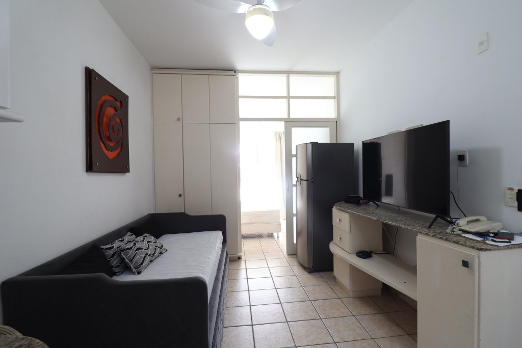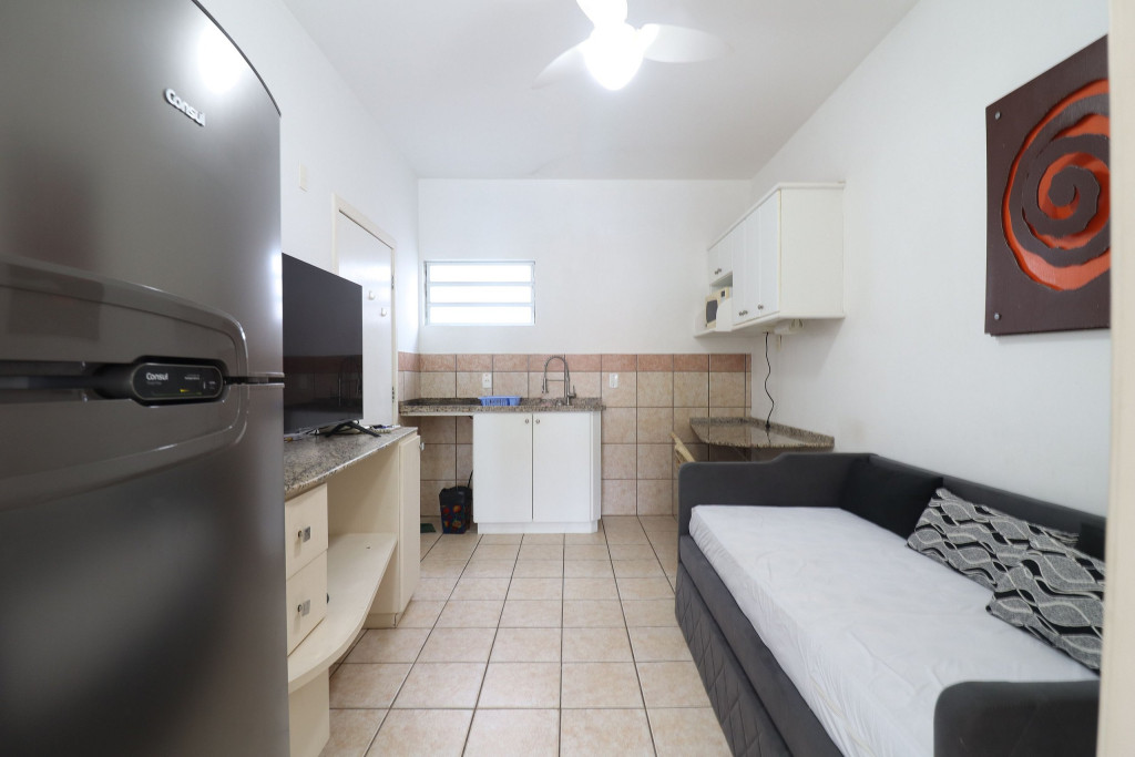 Apartamento Luxo - 01 dormitório com cama de casal, ar condicionado, sala com sofá cama, TV e cozinha (geladeira, microondas, fogão elétrico e itens básicos de cozinha) conjugada, 1 banheiro e sacada.