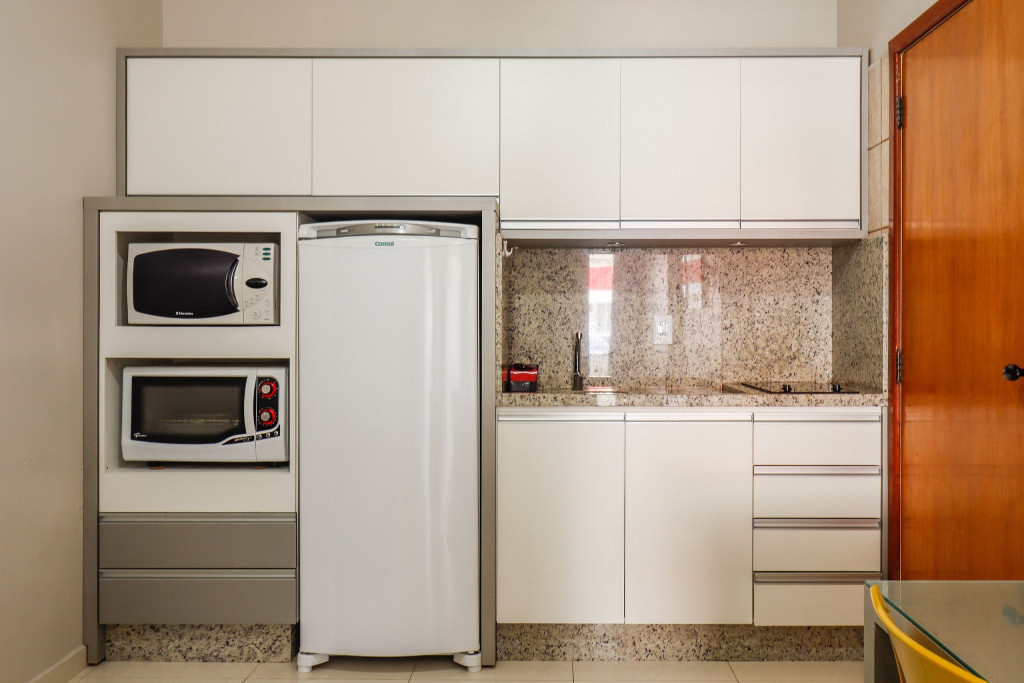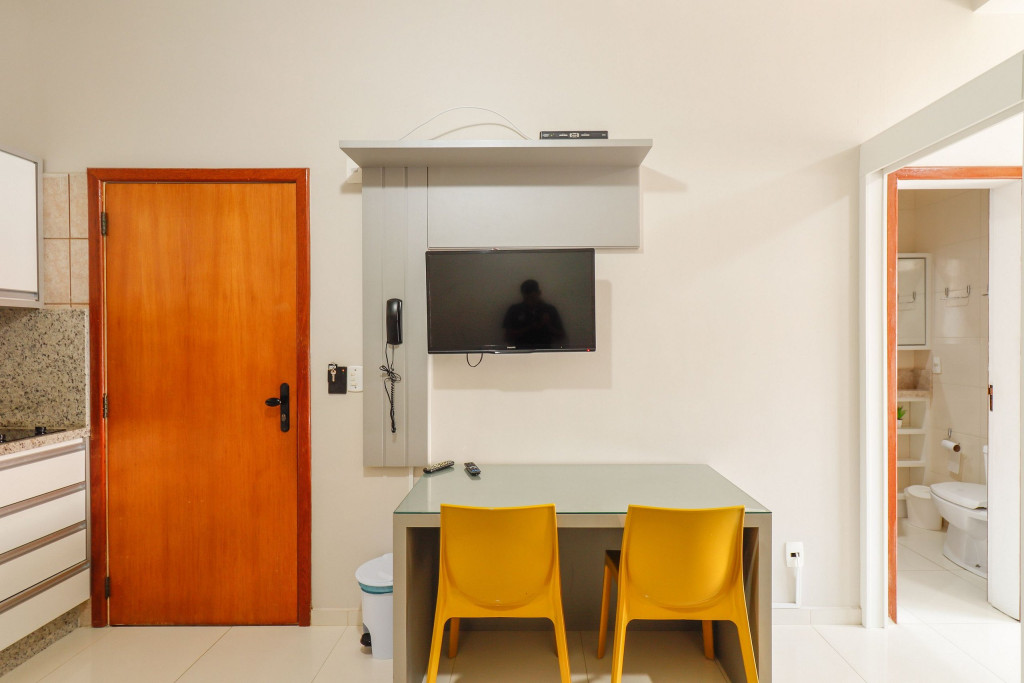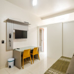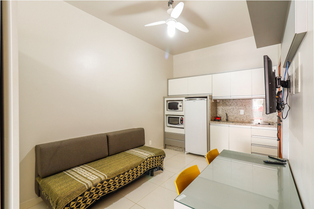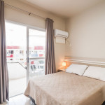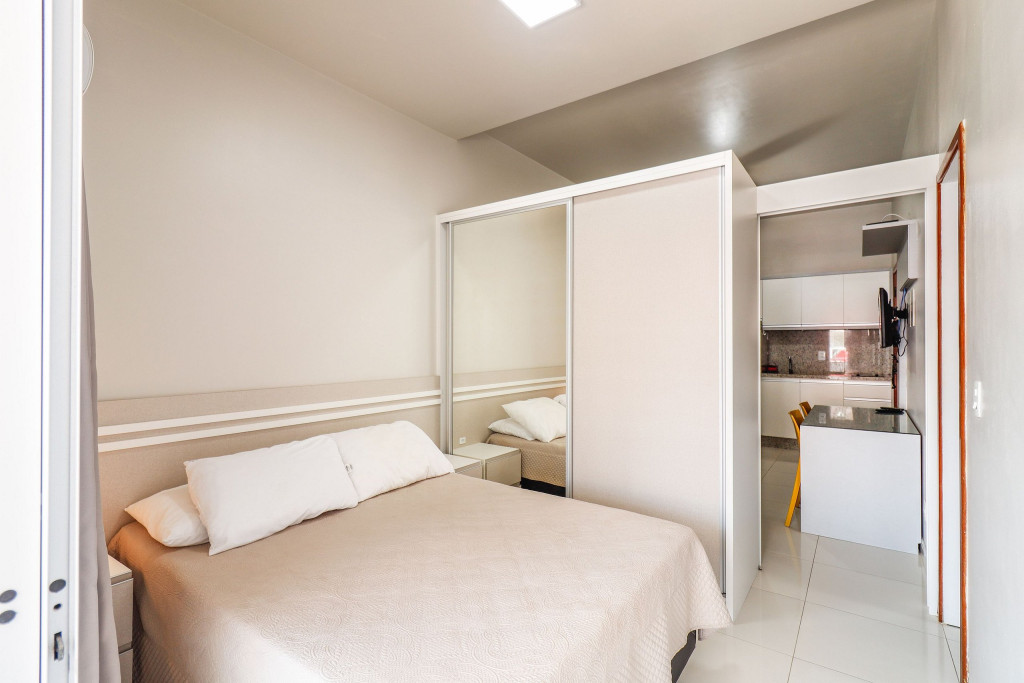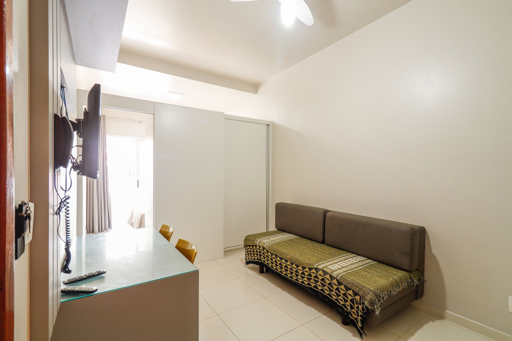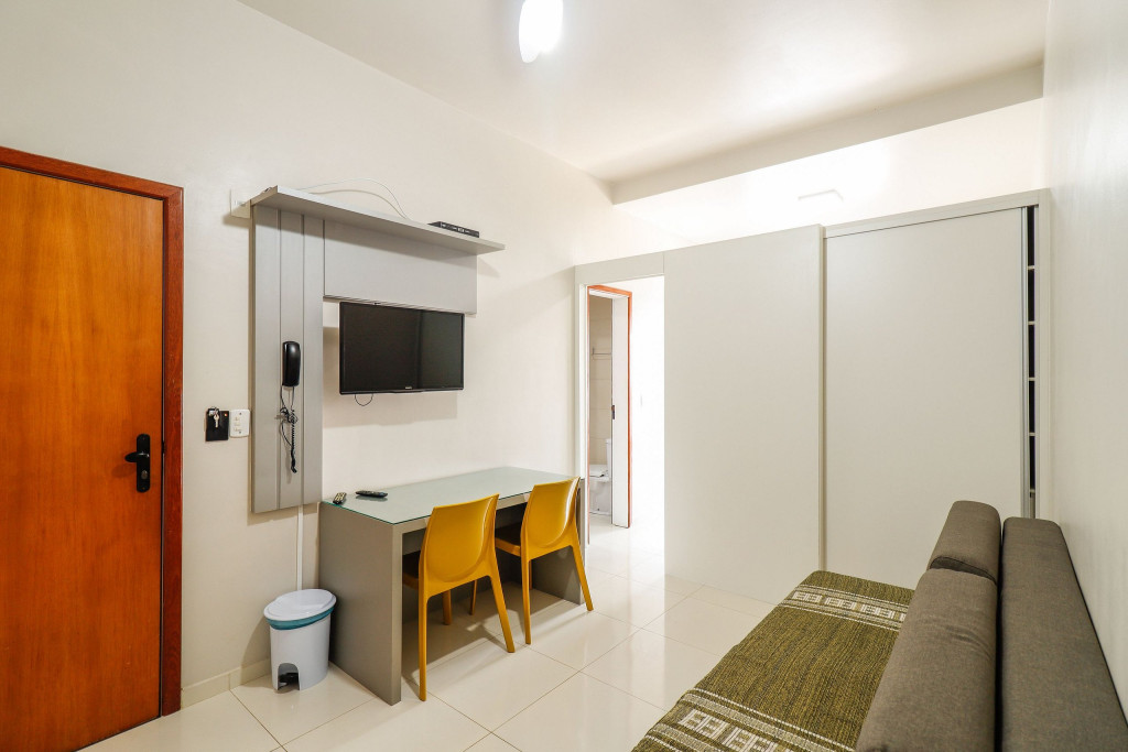 Apartamento Luxo - 01 dormitório com cama de casal, ar condicionado, sala com sofá cama, TV e cozinha (geladeira, microondas, fogão elétrico e itens básicos de cozinha) conjugada, 1 banheiro e sacada.