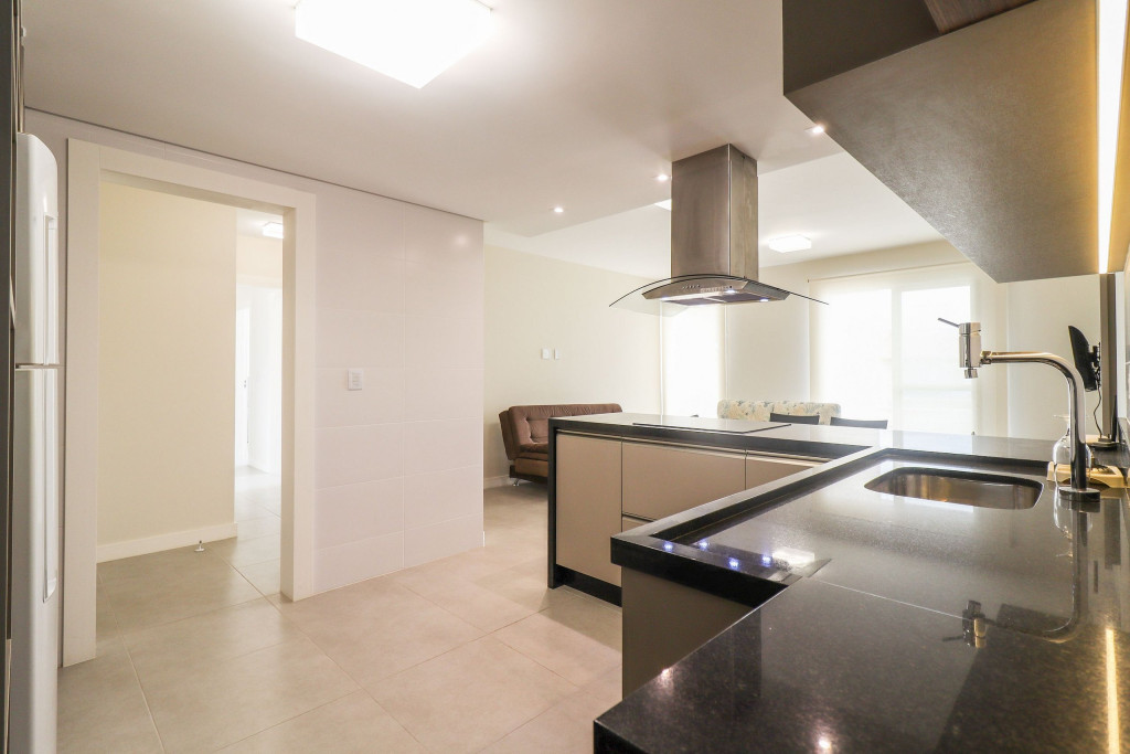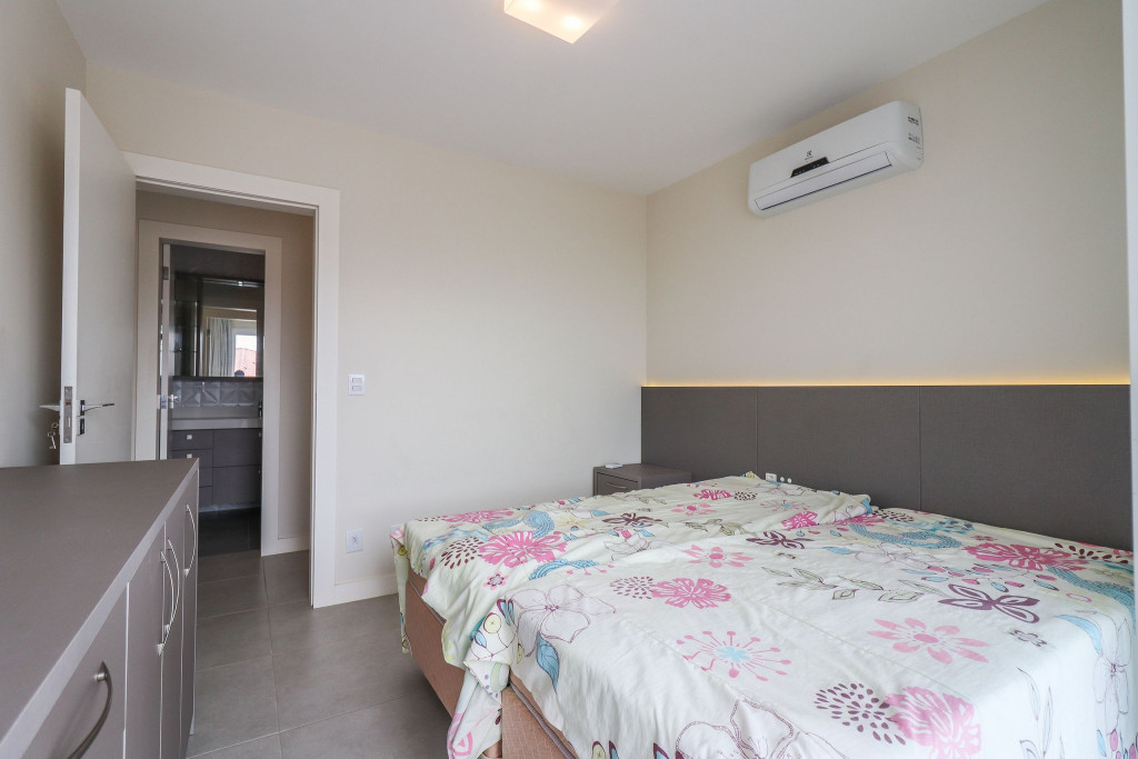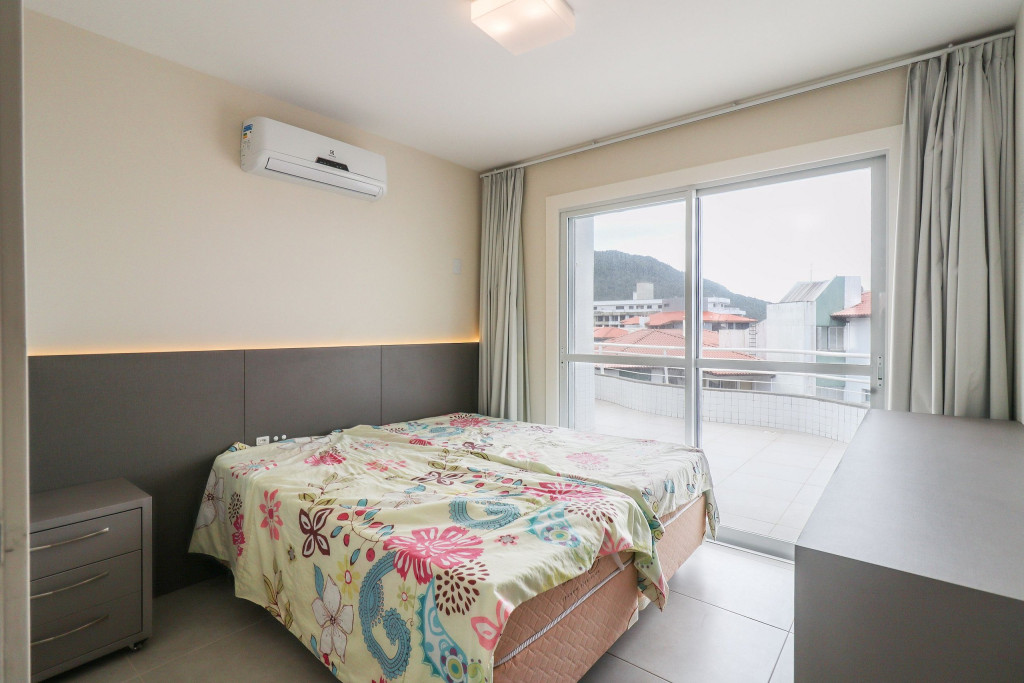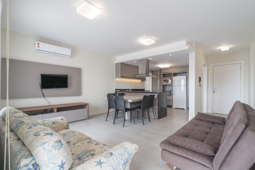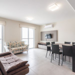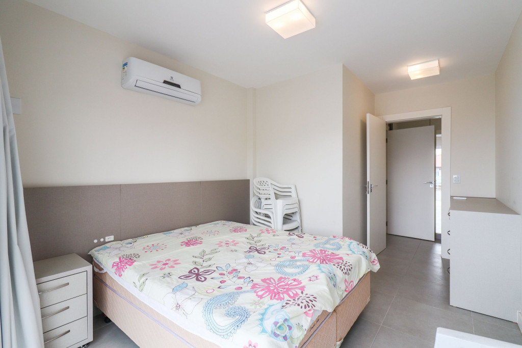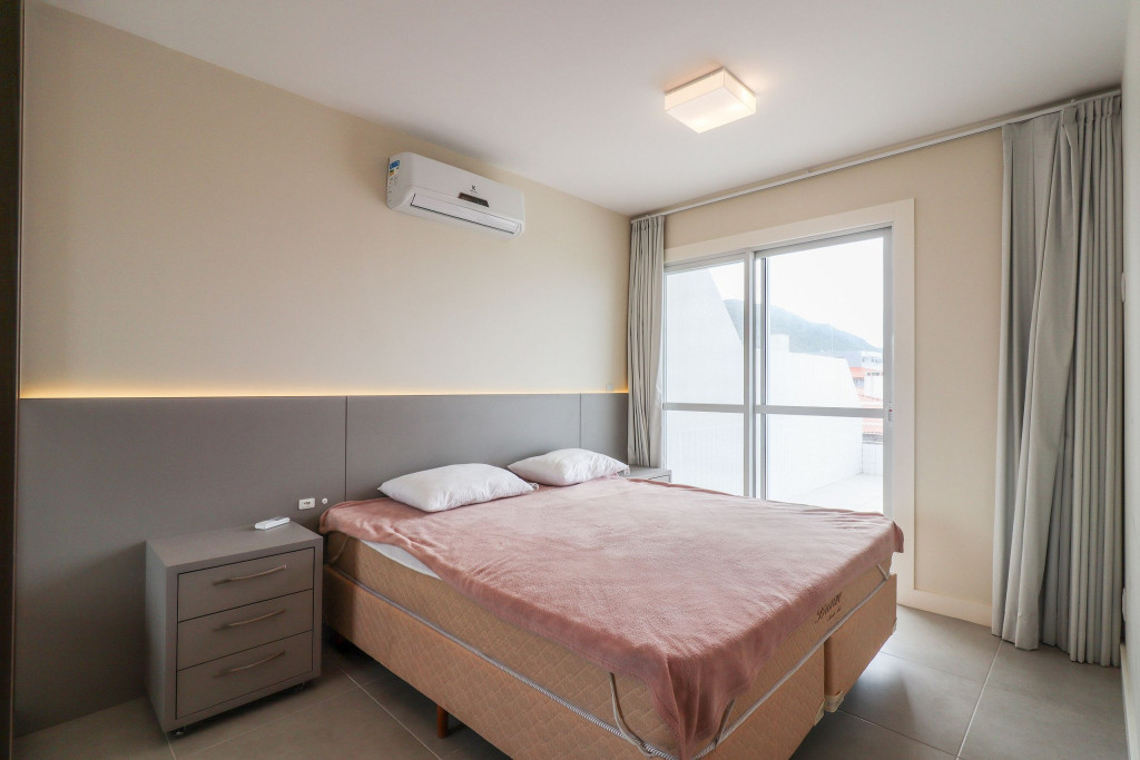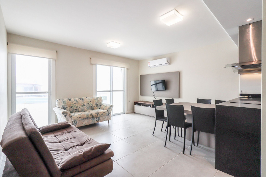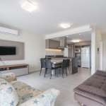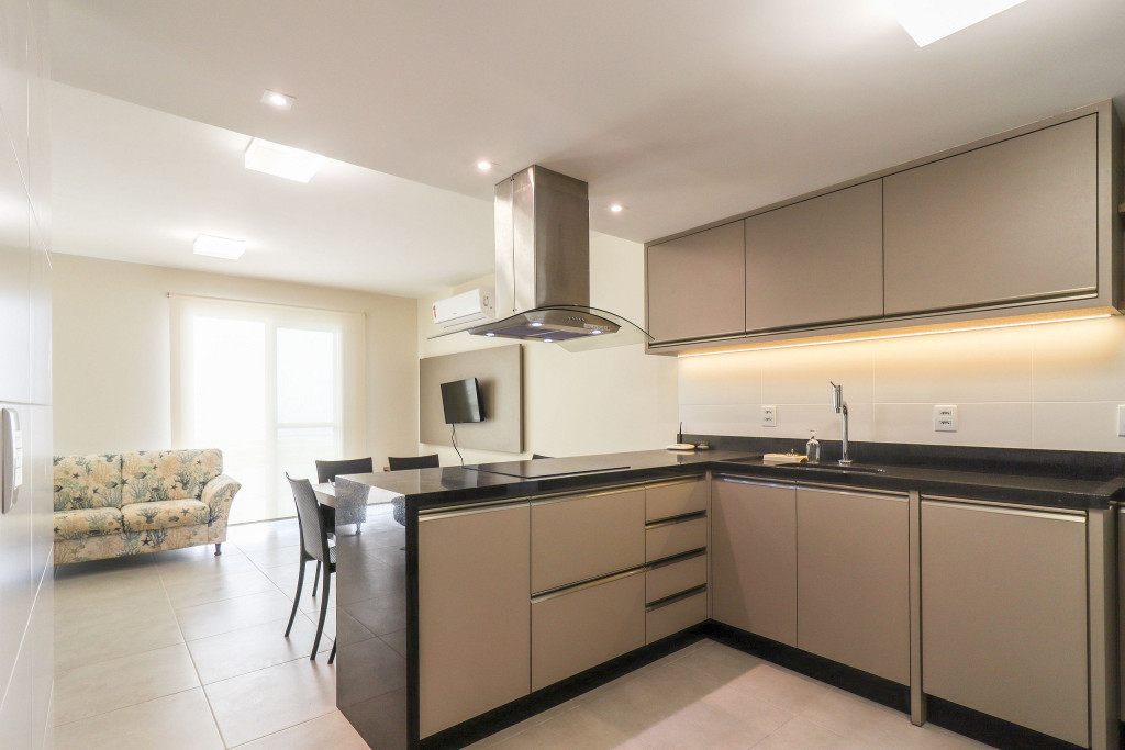 Apartamento Suíte Grand Master - 1 suíte com cama de casal, 2 dormitórios com duas camas de solteiro em cada, sala com sofá cama, ar condicionado em todos os cômodos, cozinha americana completa, área de serviço, 1 banheiro social e sacada com churrasqueira.