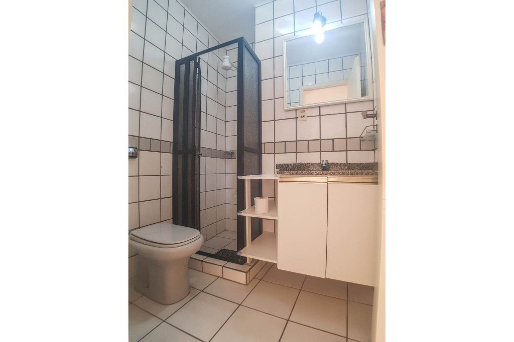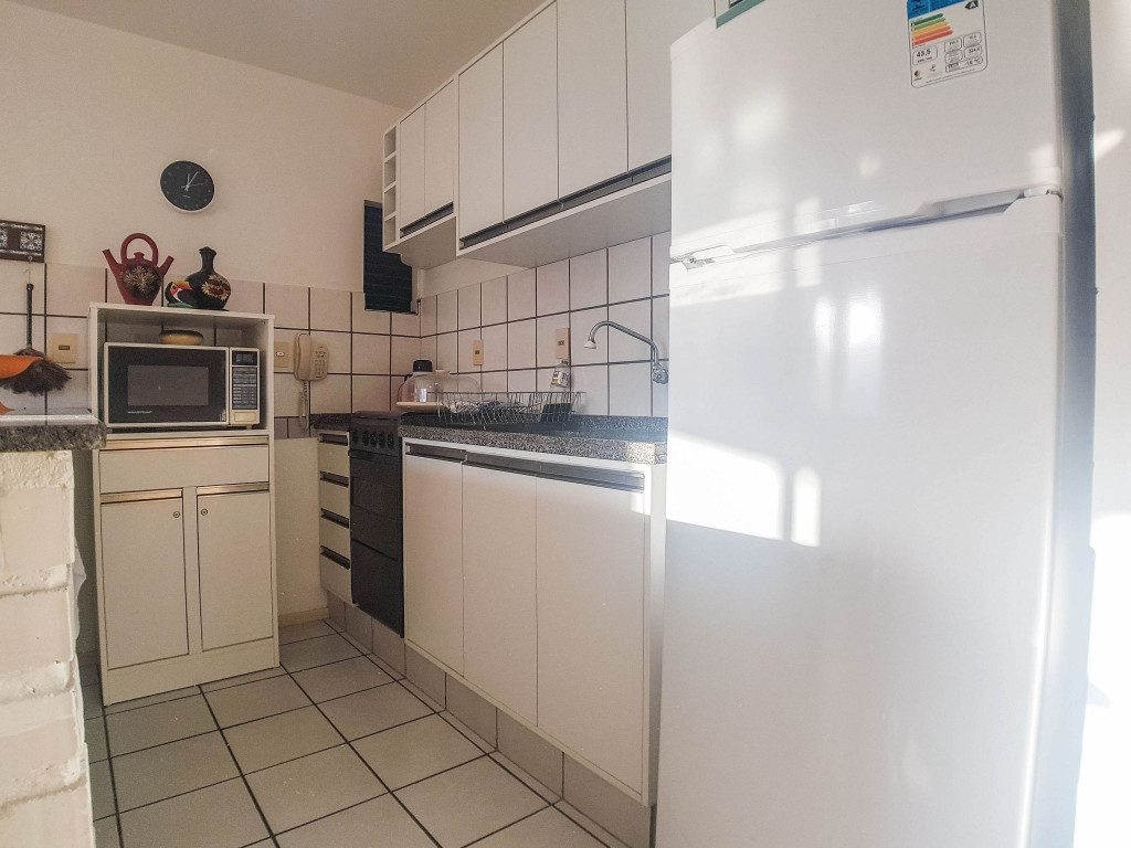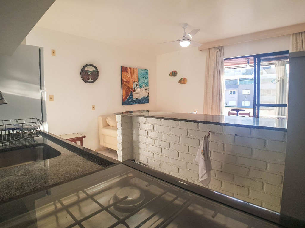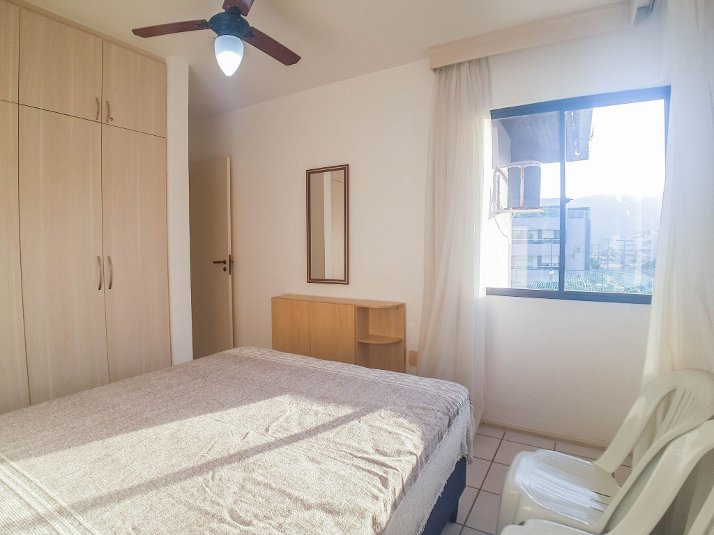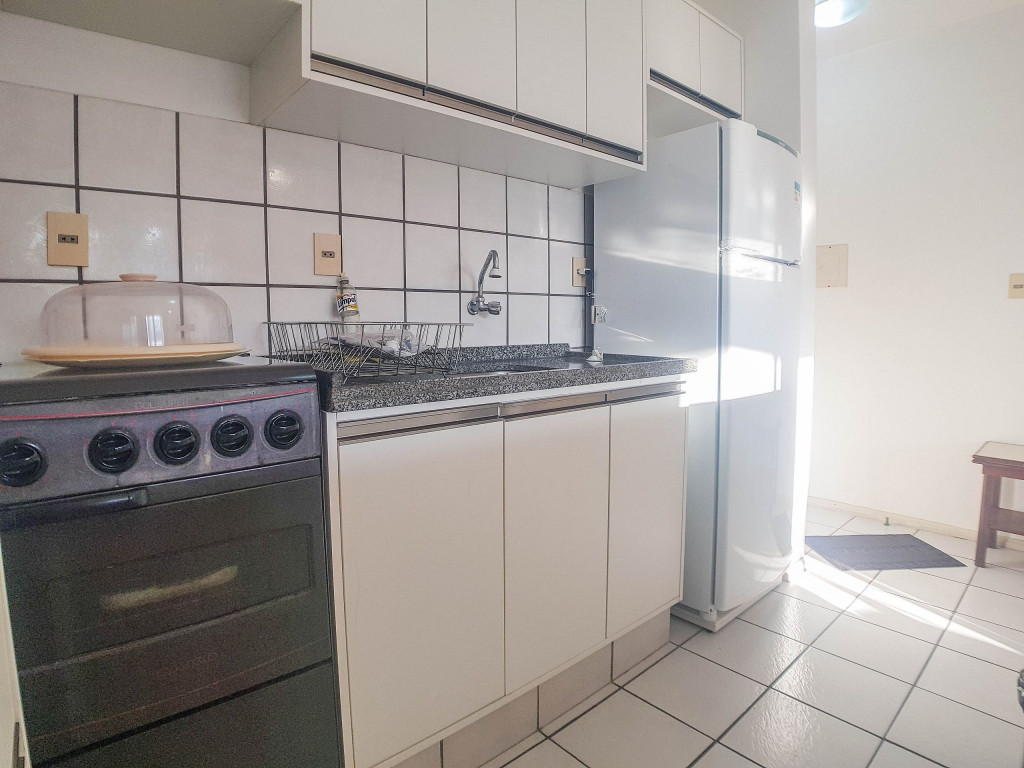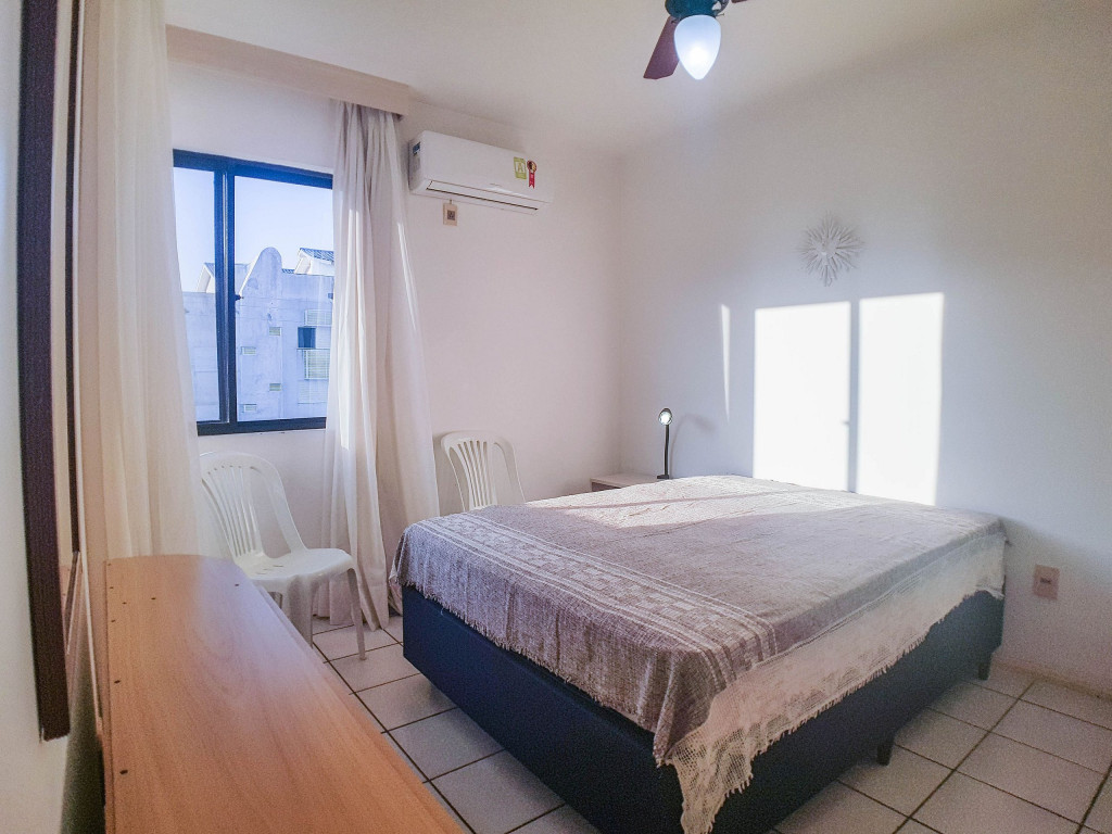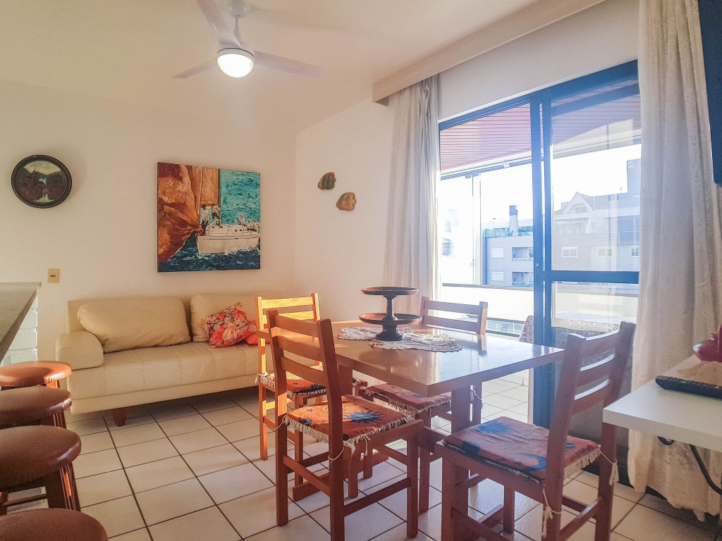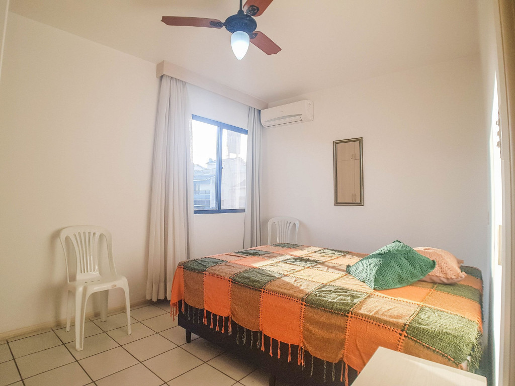 Belo apartamento, à 30 metros da praia, composto por dois dormitórios, os dois com cama de casal e ar-condicionado, sala com sofá-cama para uma pessoa, um banheiro, sacada com churrasqueira e pia, cozinha completa. Possui uma vaga de garagem.