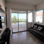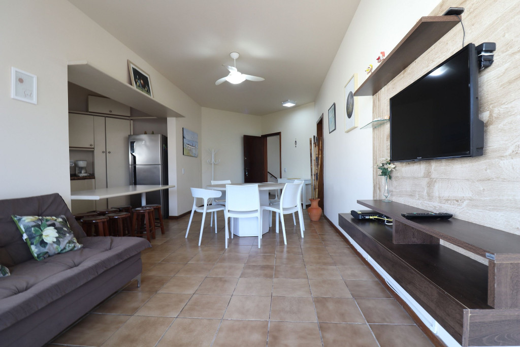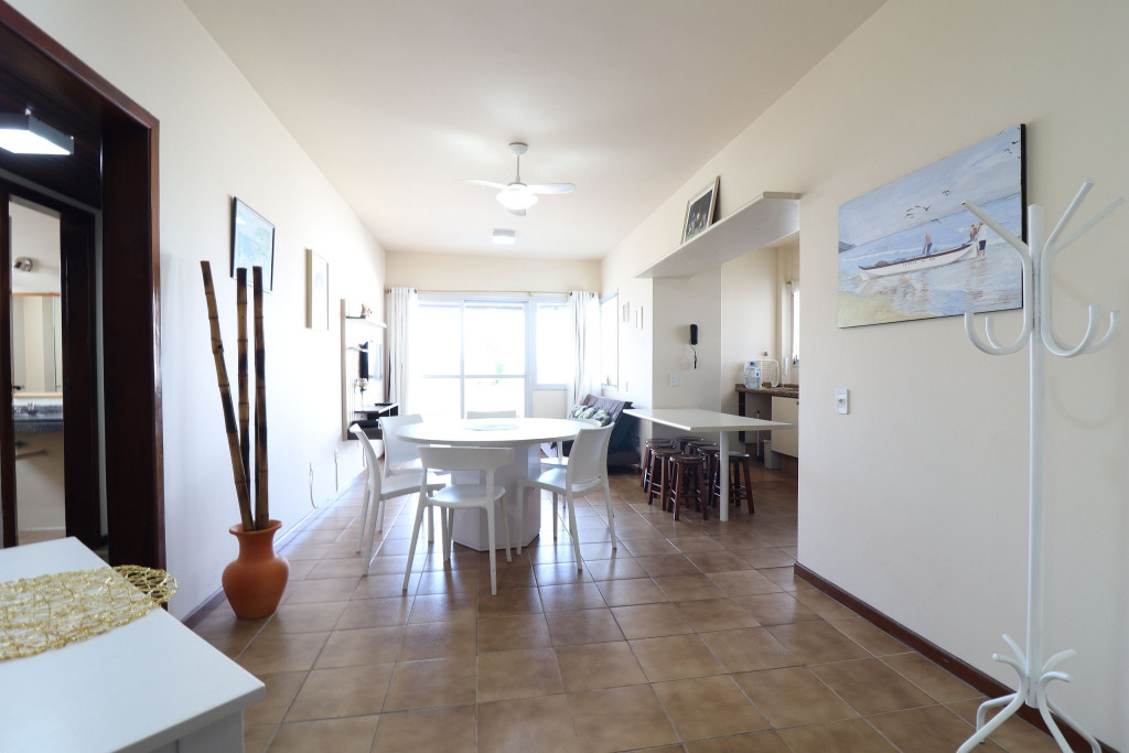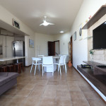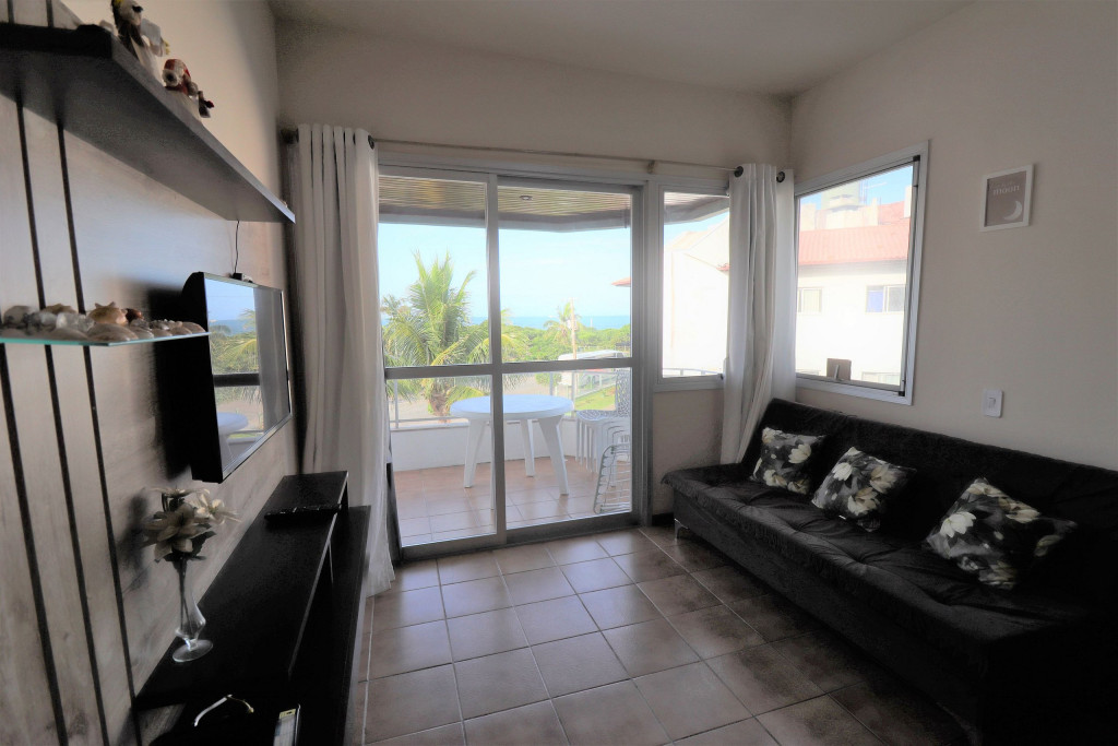 Belo apartamento, à 30 metros da praia, composto por dois dormitórios, sendo uma suíte com cama de casal, um quarto com uma beliche, uma cama de solteiro e uma cama auxiliar, banheiro social, vista lateral para o mar e cozinha. Possui uma vaga de garagem estendida que comporta dois carros. Conta com ar condicionado nos dois quartos, wi-fi, SmartTV que possui acesso a internet, NÃO possui tv à cabo.
