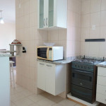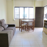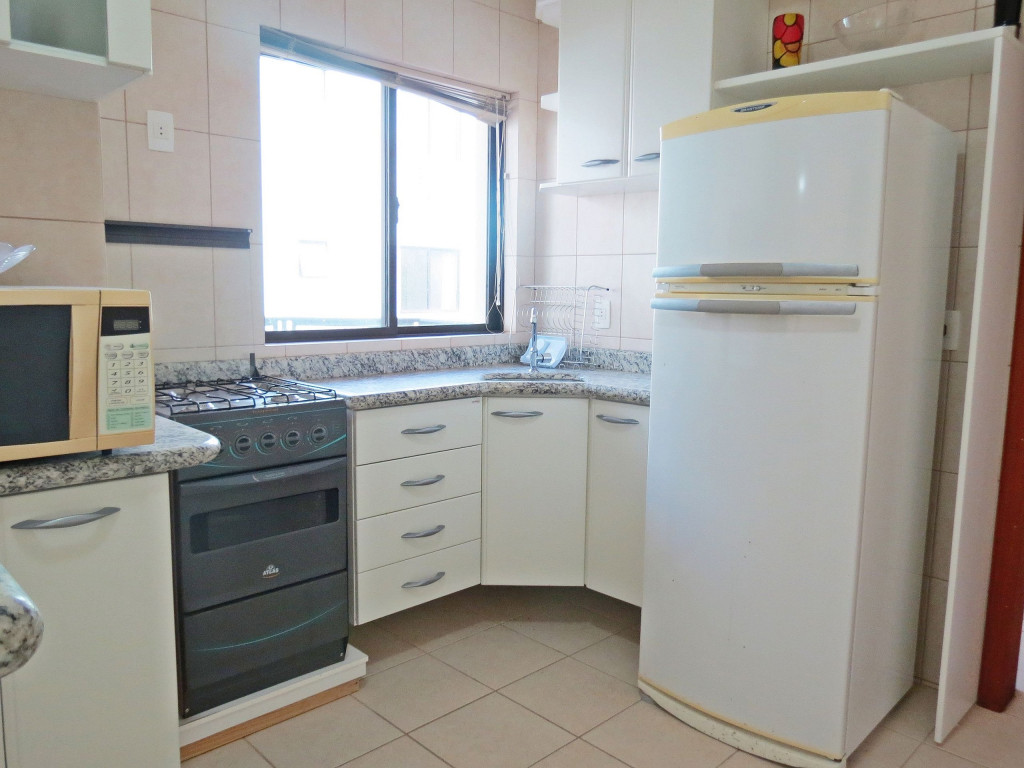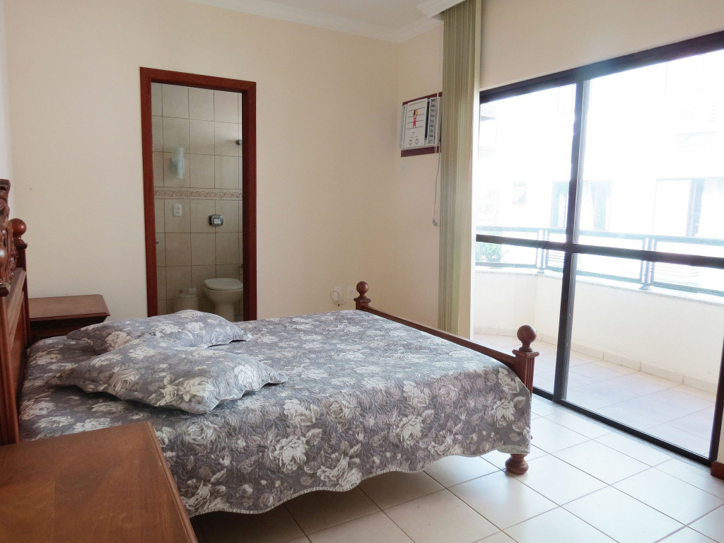 Belo apartamento, à 300 metros da praia, composto por dois dormitórios, sendo uma suíte com cama de casal e ar-condicionado, um quarto com duas camas de solteiro, uma cama auxiliar e ar-condicionado, banheiro social, sacada com churrasqueira e pia, cozinha completa, área de serviço com máquina de lavar e tanque. Possui uma vaga de garagem e conta com wi-fi.