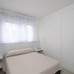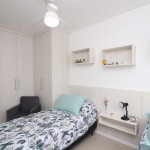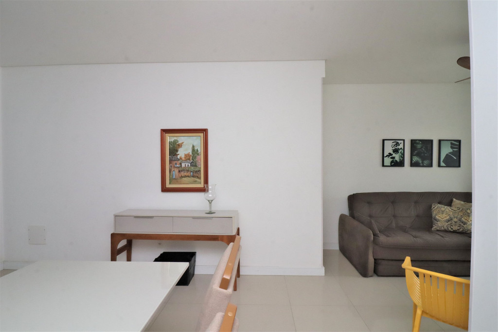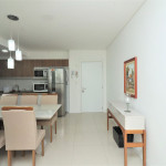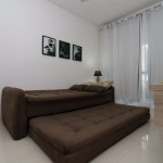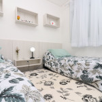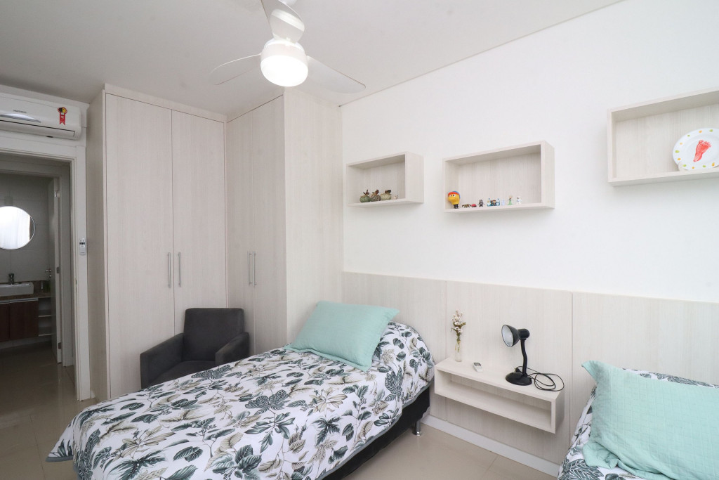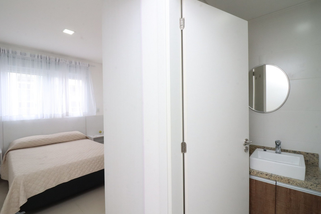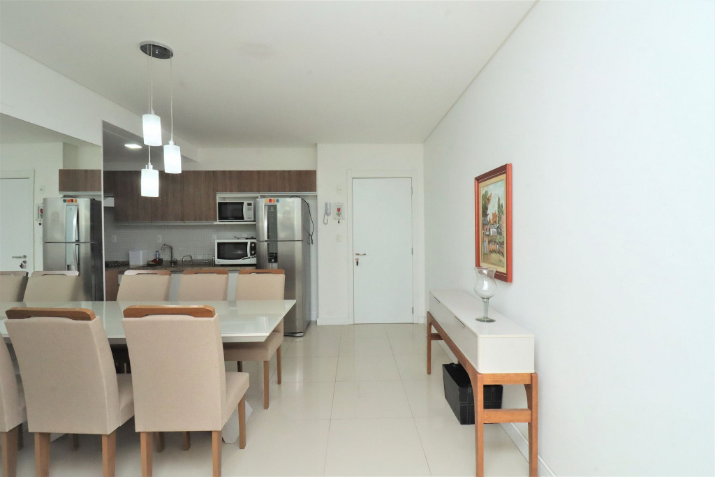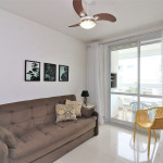 Belo apartamento, à 200 metros da praia, composto por dois dormitórios, sendo uma suíte com cama de casal e ar-condicionado, um quarto com duas camas de solteiro, uma cama auxiliar e ar-condicionado, sala com sofá-cama, banheiro social, sacada com churrasqueira e pia, cozinha completa, área de serviço com máquina de lavar e tanque. Possui uma vaga de garagem, conta com wi-fi e TV à cabo.