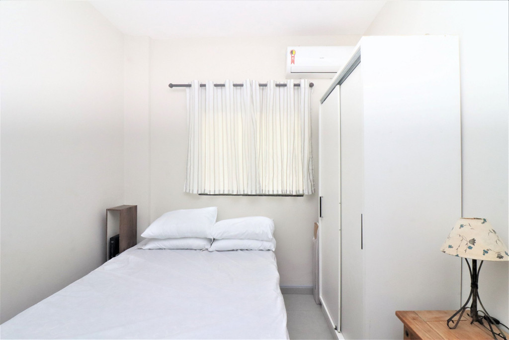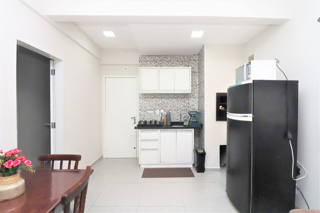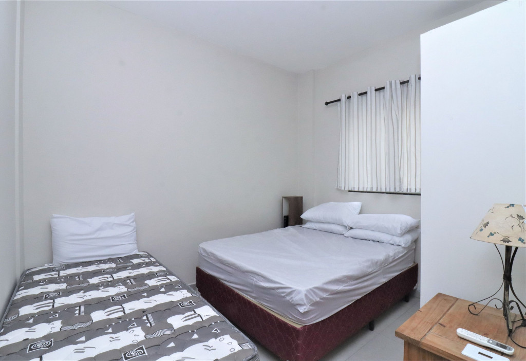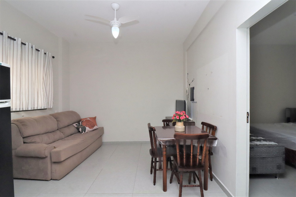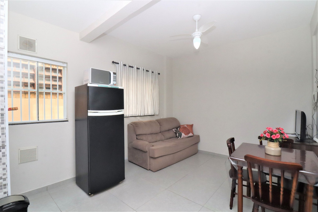 Belo apartamento, à 100 metros da praia, composto por um dormitório com uma cama de casal, uma cama de solteiro e ar-condicionado, sala com sofá-cama, banheiro, cozinha conjugada, churrasqueira e tanque de lavar. Possui uma vaga de garagem, conta com wi-fi e TV à cabo.